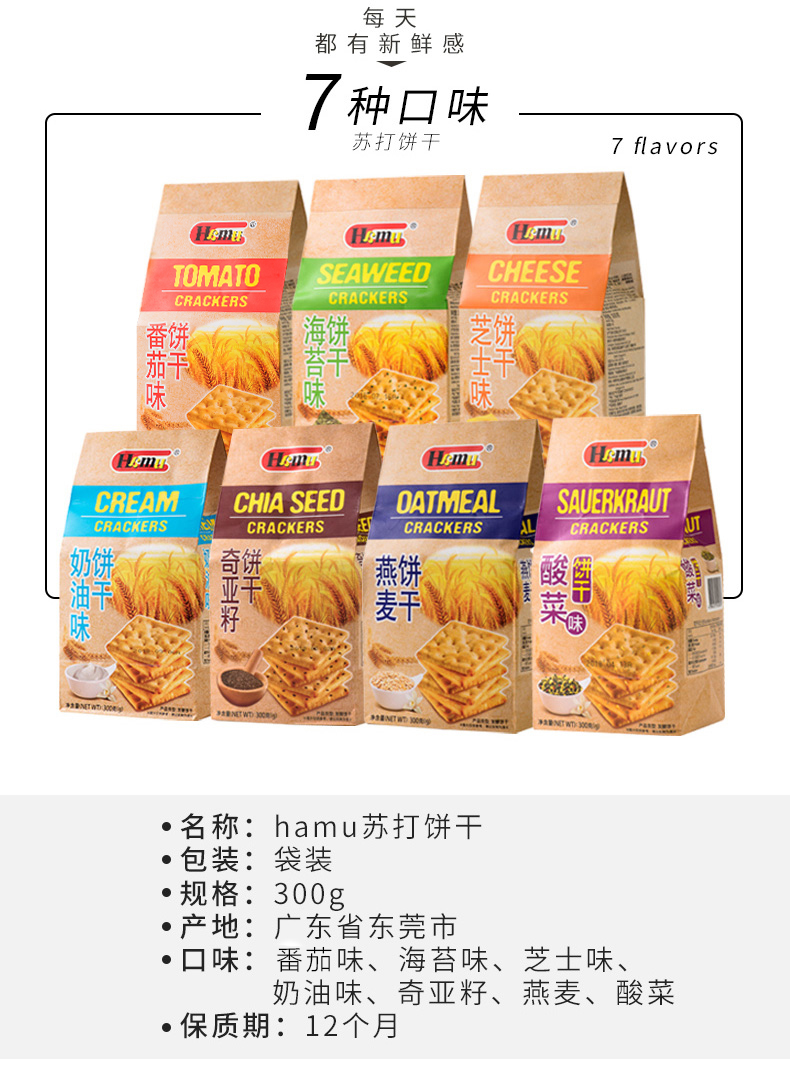 hamu咸味苏打饼干300g番茄/燕麦孕妇代餐梳打牛轧饼原料整箱批发