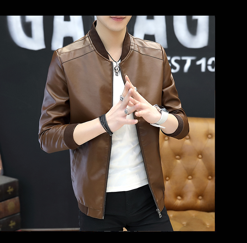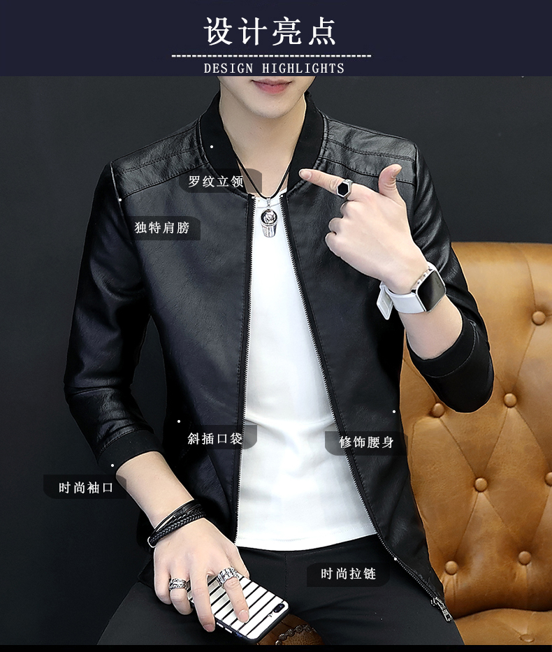 佐臣洛2019秋冬韩版男士休闲皮衣外套青少年百搭帅气男装外衣服