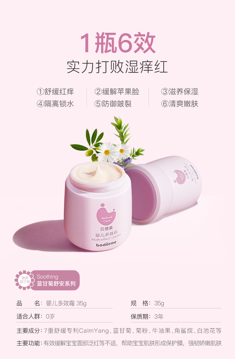 多效倍润面霜35g更大容量,高保湿,多营养,天然温和,舒缓干燥,宝宝保湿滋润面霜;看得见的水润清新~