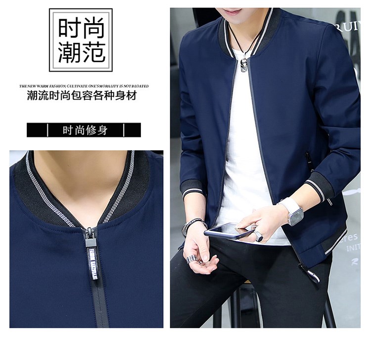 佐臣洛2019秋韩版男士休闲加绒夹克衫外套青年棒球领修身开衫外衣