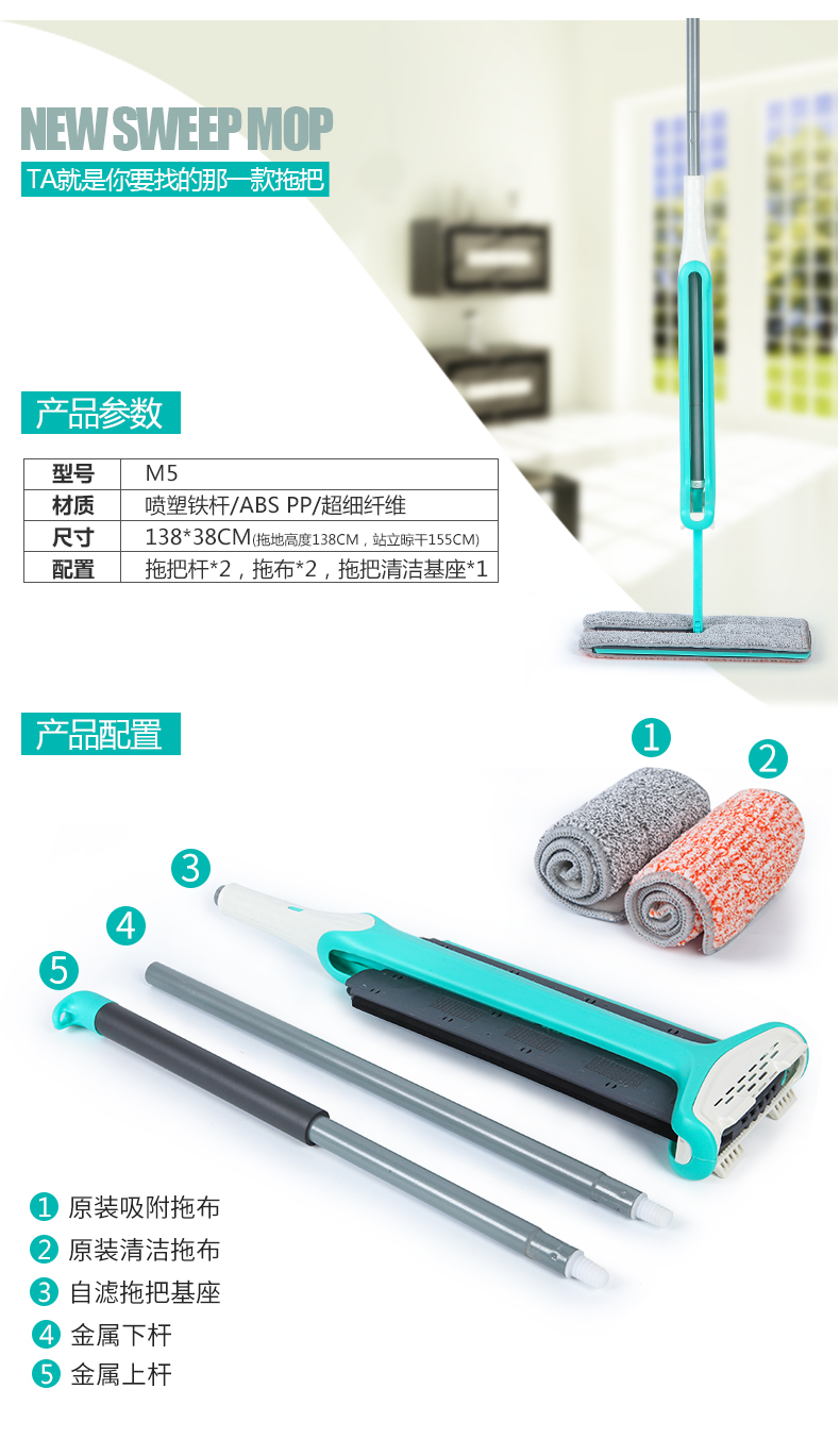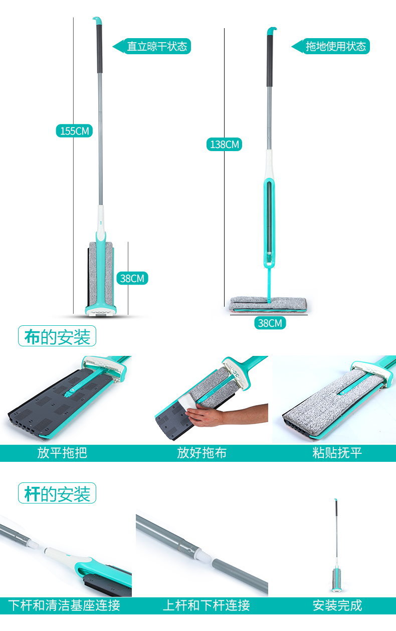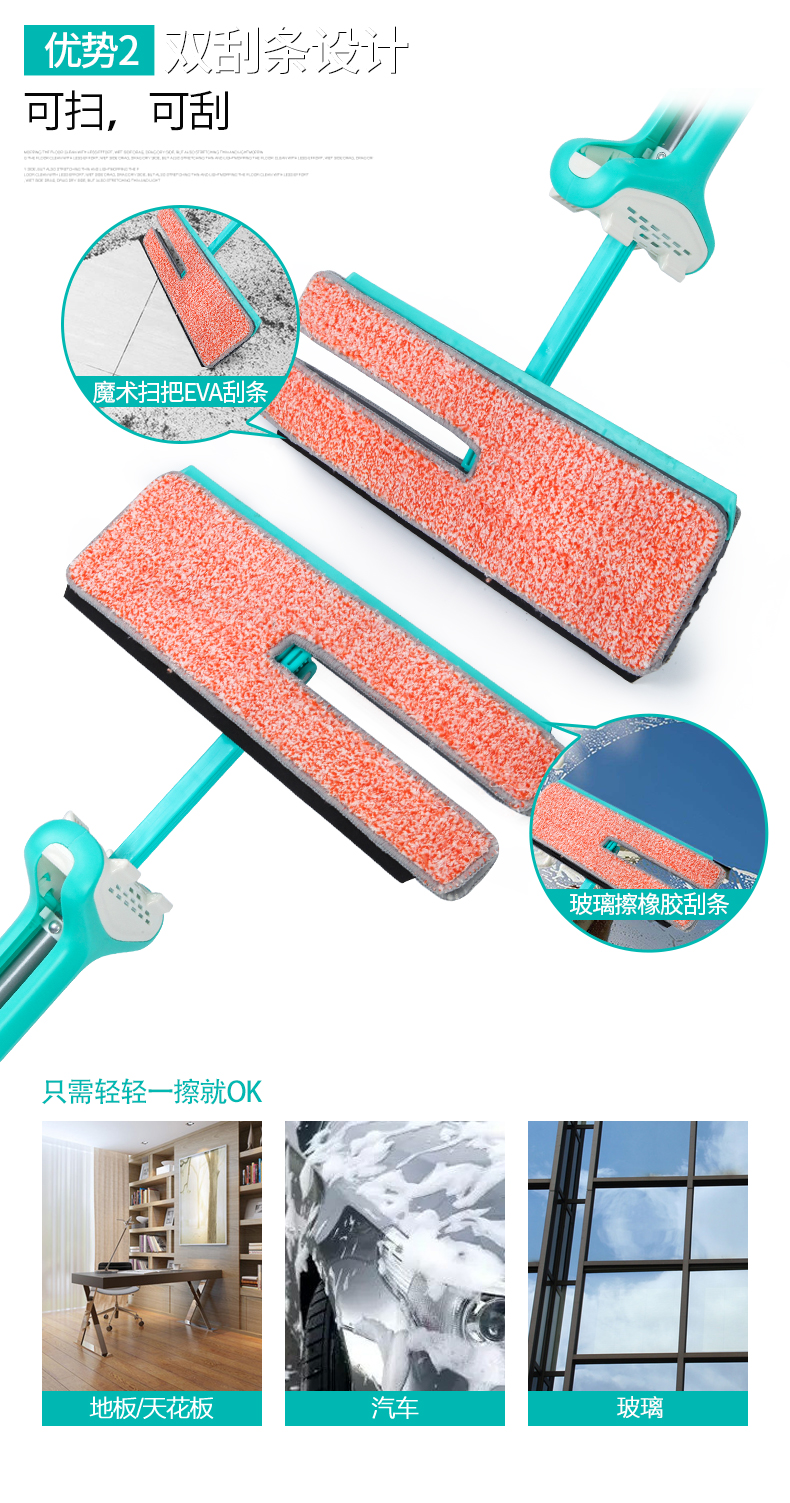 【历史新低,赠替换布+刮刀】拖地洁净更省力,触动你内心的七大优势,轻轻触摸,就会发现1与众不同。加厚柔软超细吸水性纤维。双面刮条,一面扫地,一面刮窗。人性化免手洗,呵护双手。