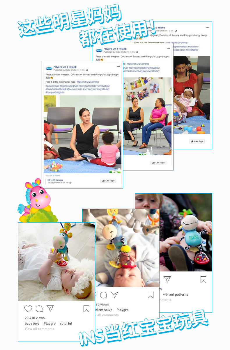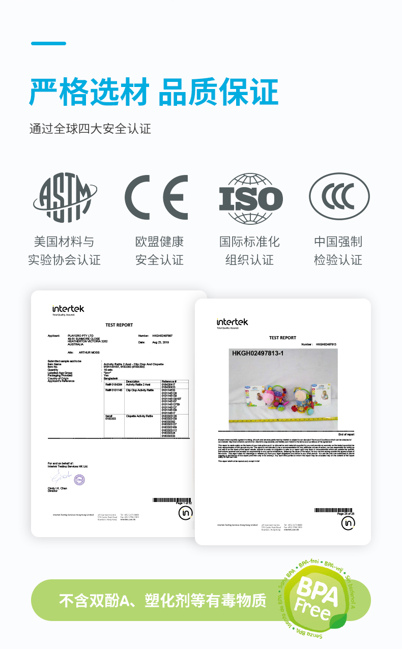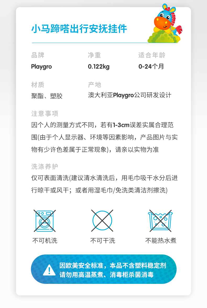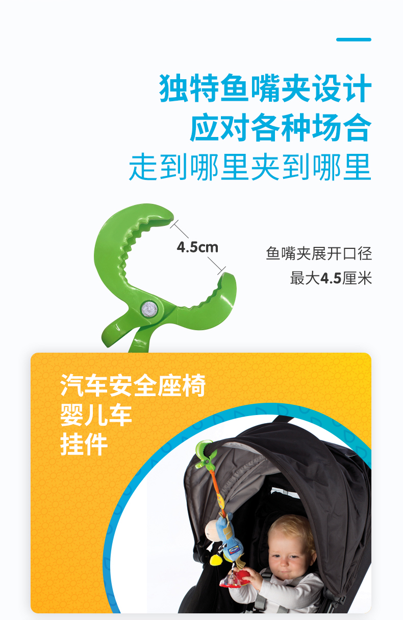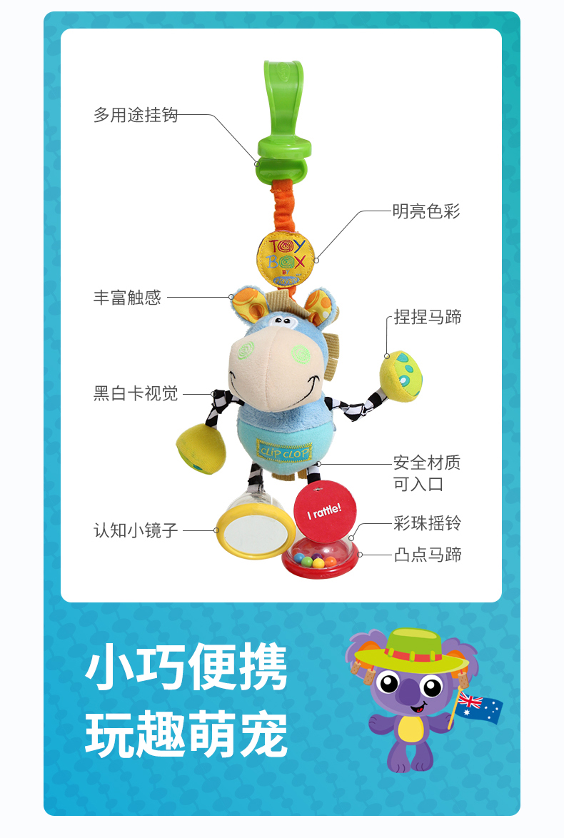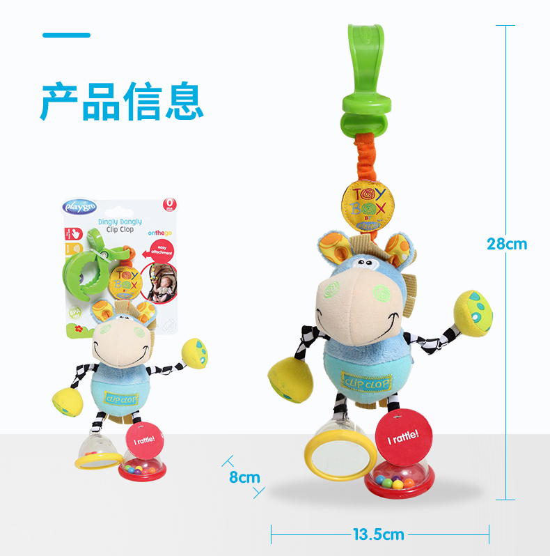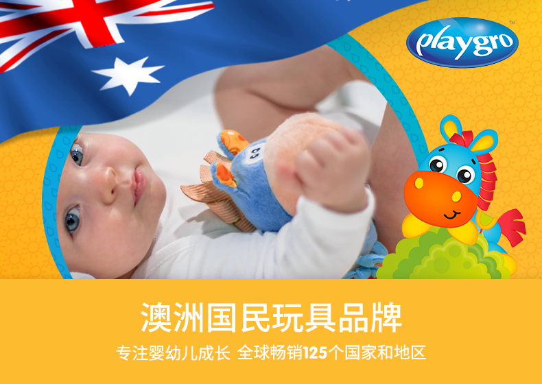 Playgro婴儿玩具推车挂件公仔早教益智手抓摇铃安抚玩具可啃咬