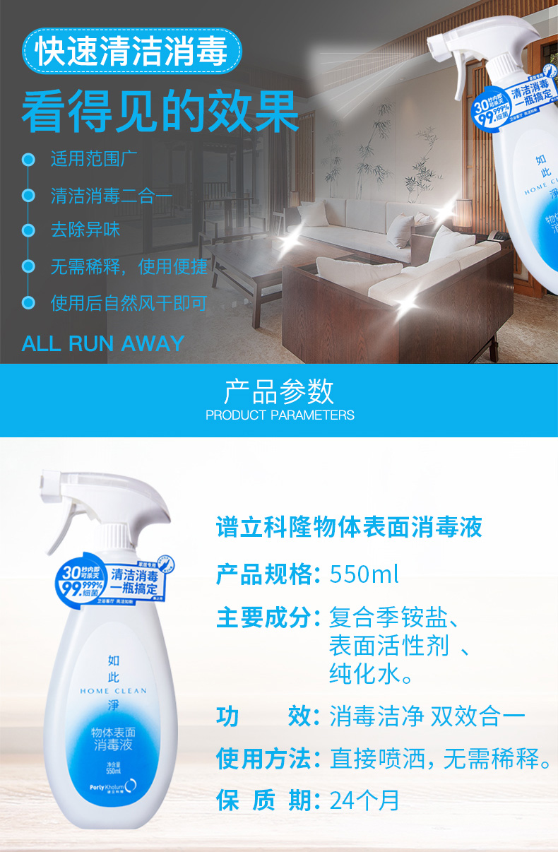 PK谱立科隆家用消毒液房间卫生间家具空调冰箱杀菌除菌清洗喷雾