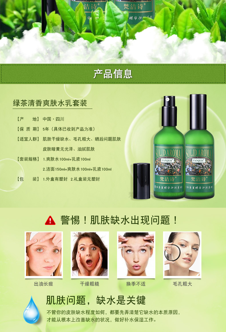 梵洁诗绿茶保湿水乳套装补水控油紧致护肤旗舰官网正品店女化妆品