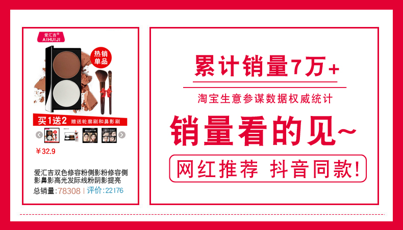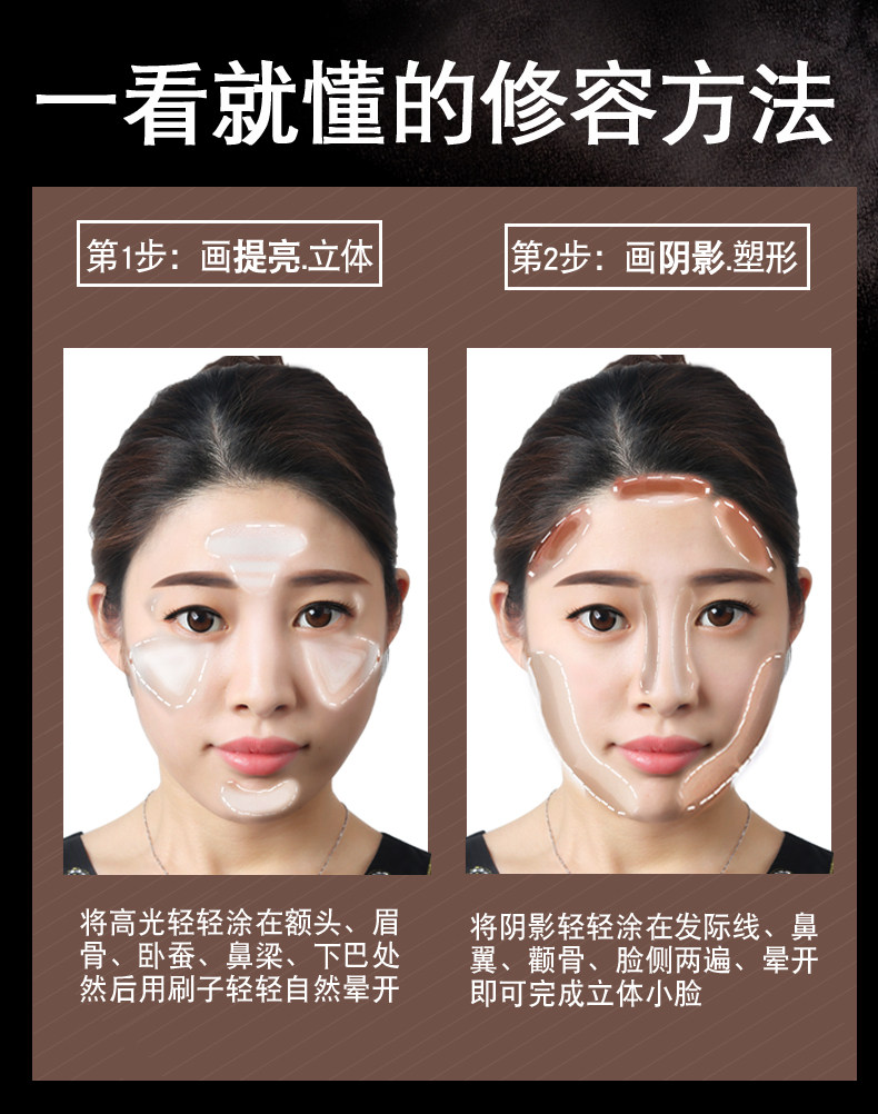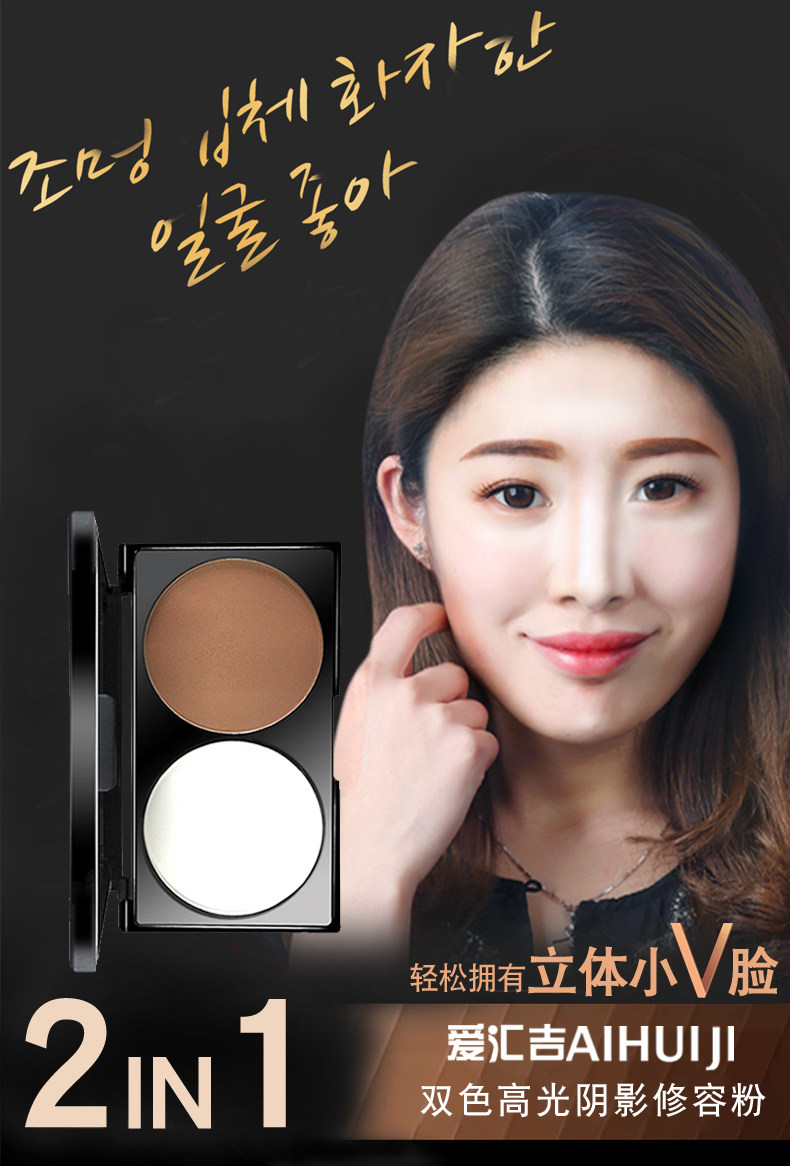 爱汇吉双色修容高光一体盘侧影鼻影发际线粉修容棒阴影提亮初学者