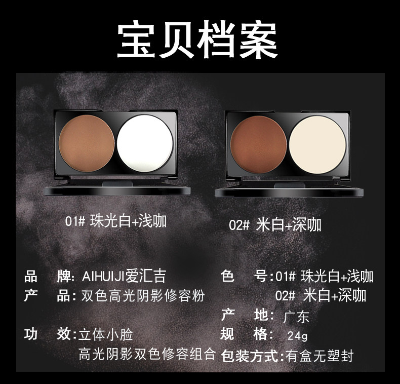 【小红书推荐款】即送轮廓刷和鼻影刷!!爱汇吉双色高光阴影修容粉,轻薄透气,清爽控油,隐形毛孔,不易浮粉,色泽自然,可作修容粉,高光粉,阴影粉,眉粉,也可用于修饰脸型,轻松打造面部立体感!