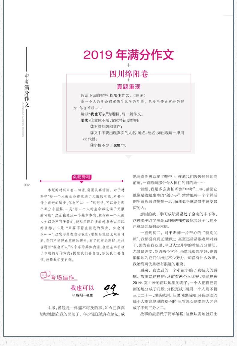 老师推荐中考满分作文,掌握写作技巧,海量写作素材,名师点评,清晰印刷,阅读好质量,中学生必读满分作文,思维创新,多维度予以高分启示,让孩子写作一站到位,精选好书速抢!