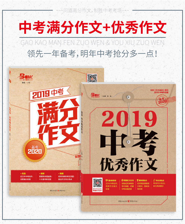 中考满分作文+中考优秀作文组合共2本 中考满分作文素材2019精选中考满分作文2020版 中考满分作文选大全初中生中考初三必备作文书