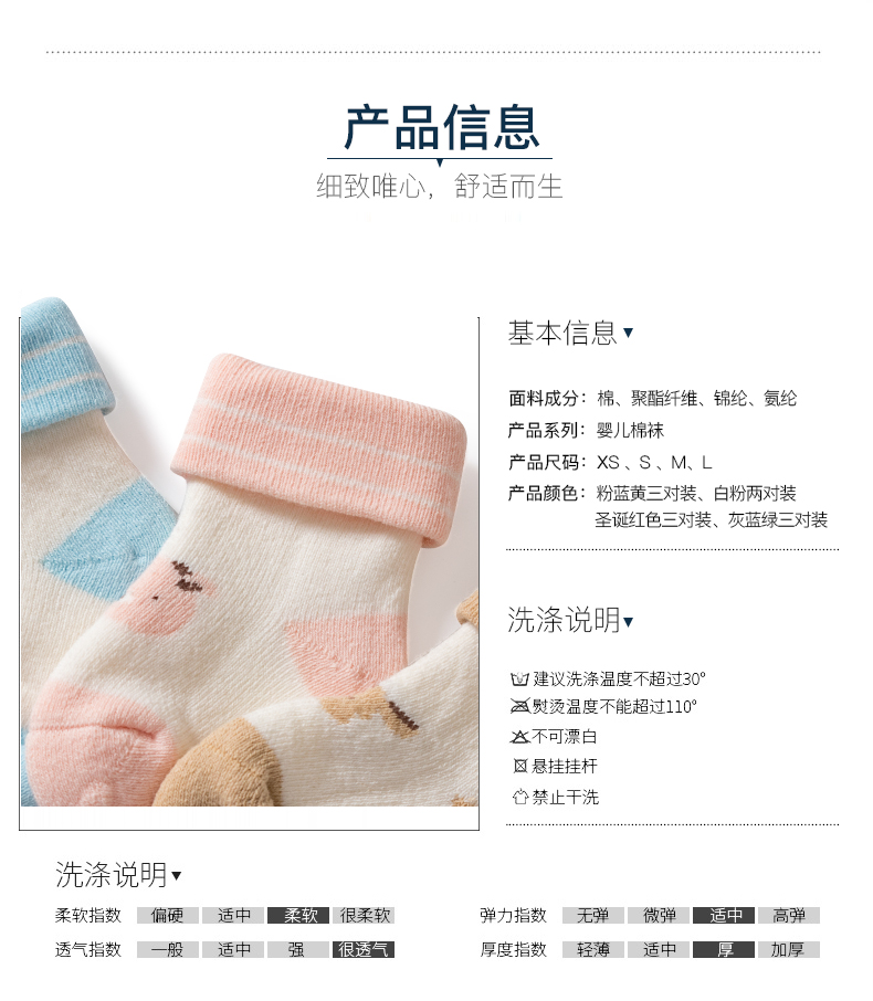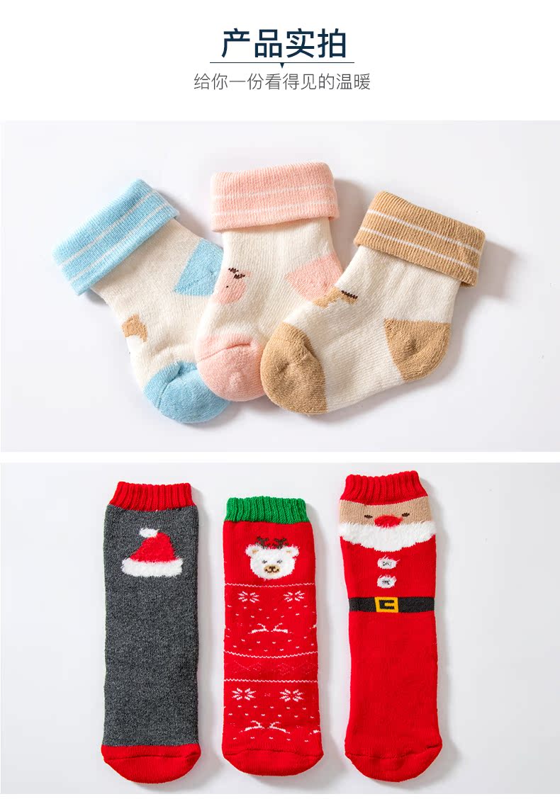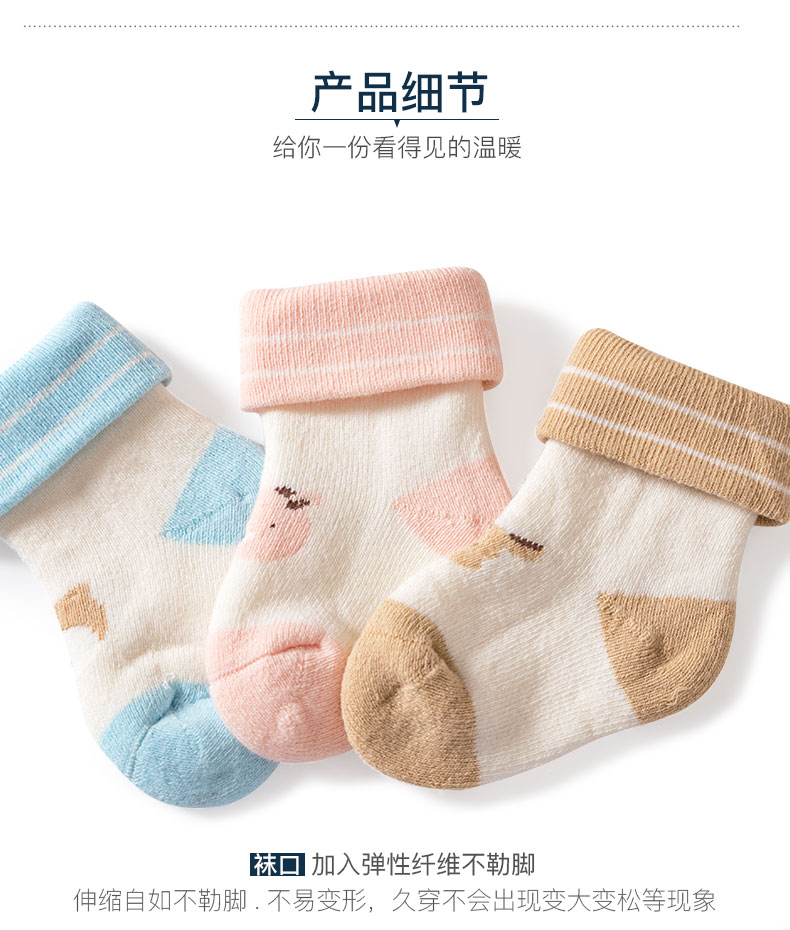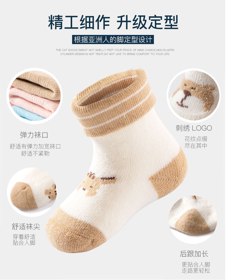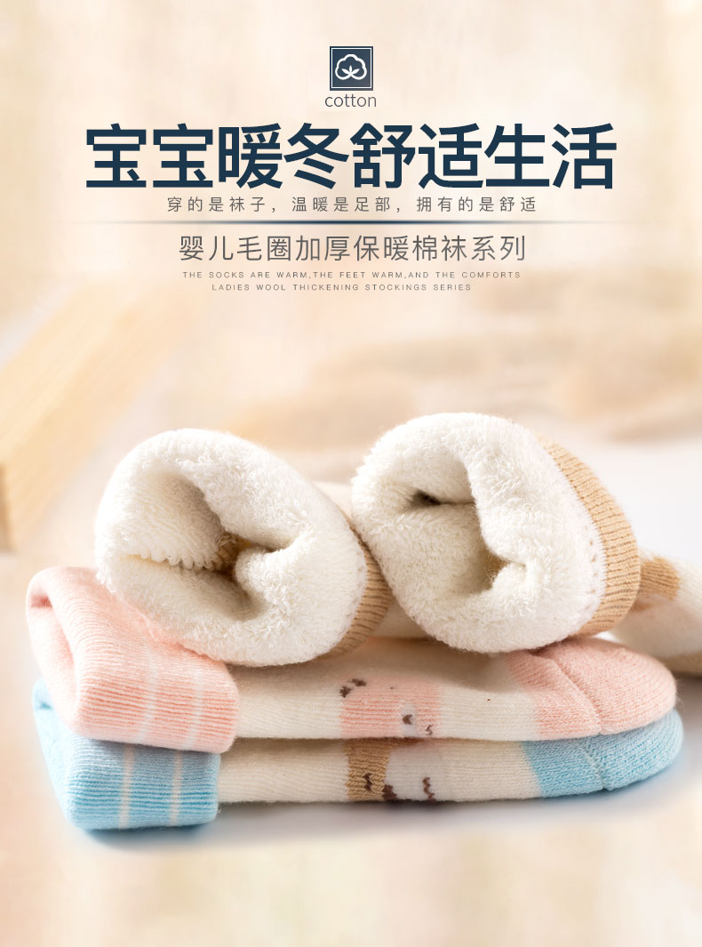 婴儿袜子秋冬纯棉加厚保暖袜冬季袜子宝宝毛圈袜新生儿可爱卡通袜