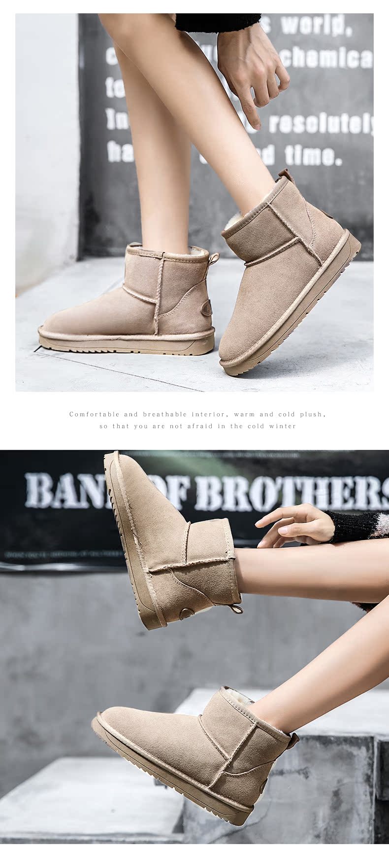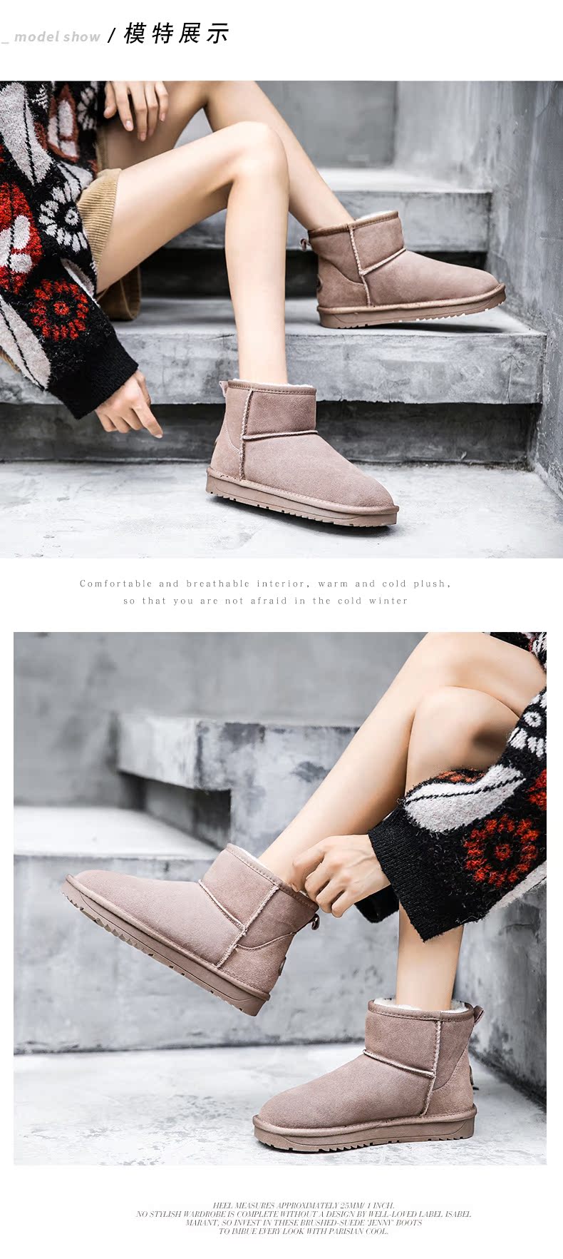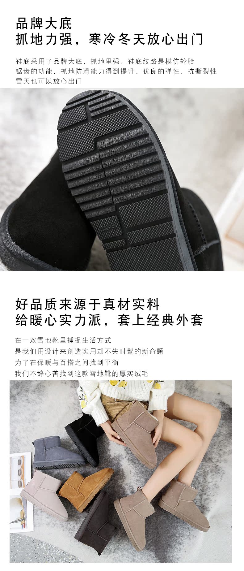 雪地靴女短筒靴子2019新款雪地棉鞋子冬季加厚真皮加绒保暖面包鞋