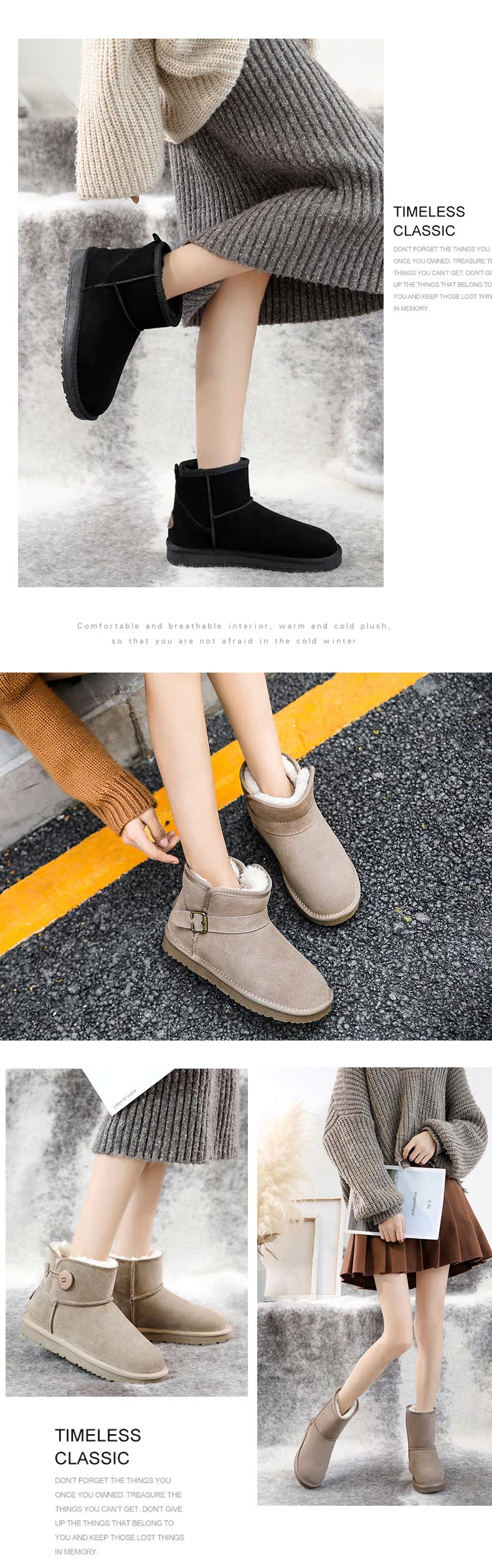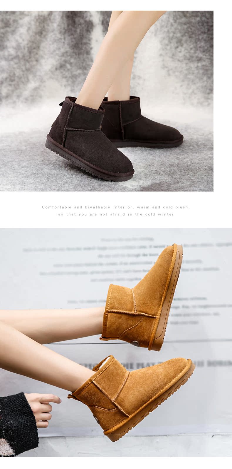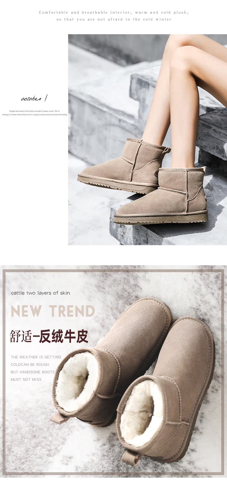 雪地靴女短筒靴子2019新款雪地棉鞋子冬季加厚真皮加绒保暖面包鞋