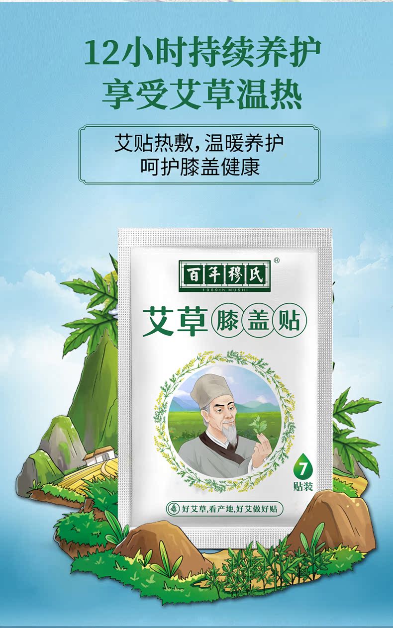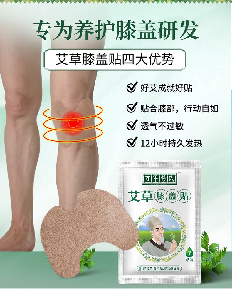 百年穆氏艾草膝盖贴关节贴热敷贴自发热保暖贴防寒艾叶护膝贴