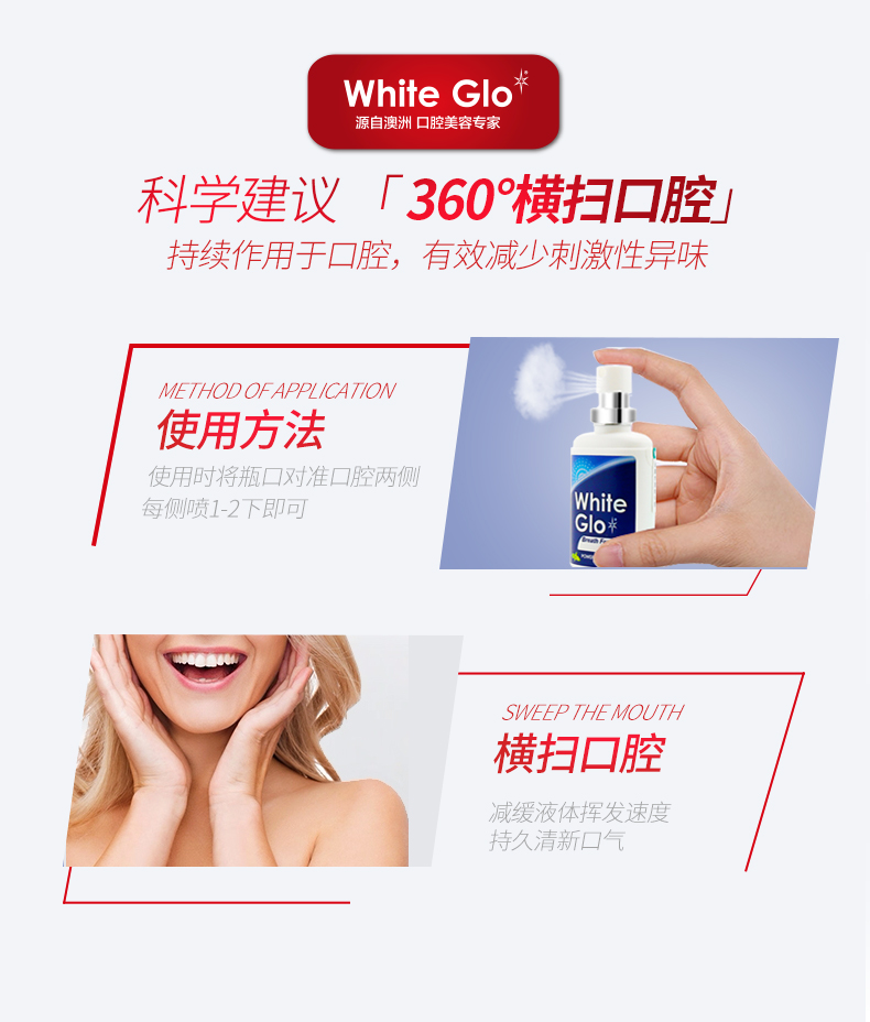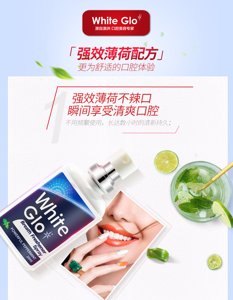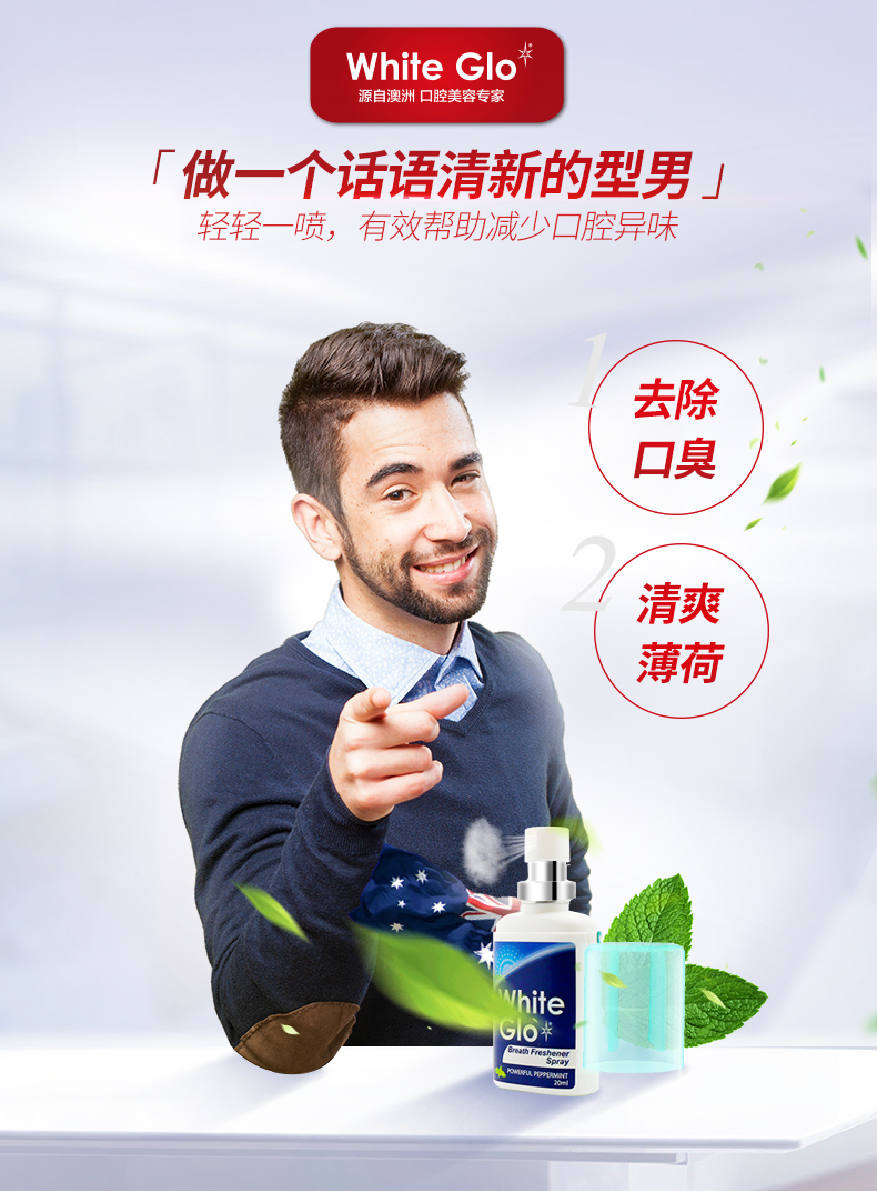 澳洲WhiteGlo/惠宝薄荷口气清新剂喷雾 男士女士去口臭神器持久香