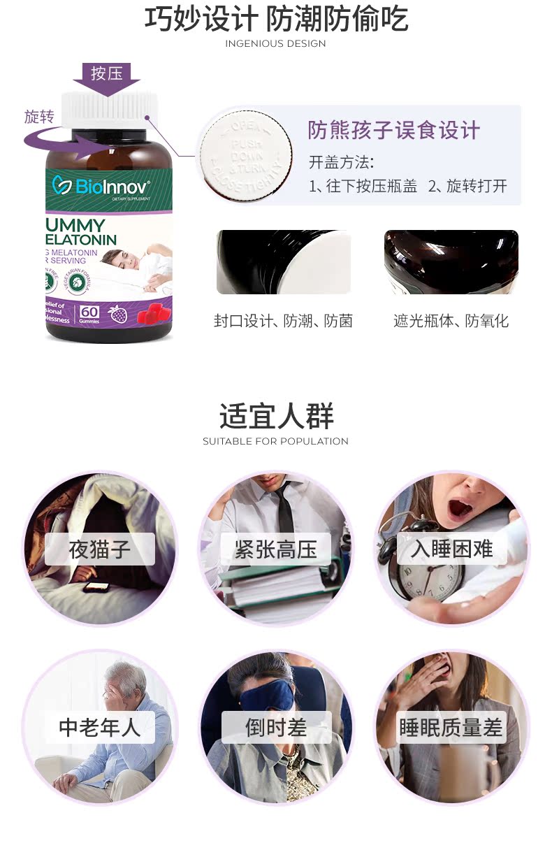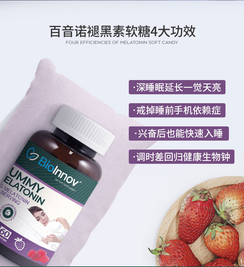 BioInnov/百音诺褪黑素软糖促,不但能够治疗失眠还能有效提高人体的免疫,睡前一粒,轻松入睡,改善生活规律,助眠实力派,一觉到天亮~~~