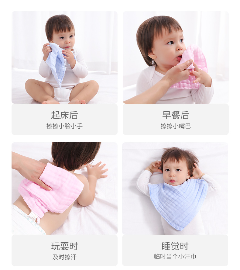 棉店婴儿口水巾超柔纯棉宝宝柔软洗脸毛巾新生儿童纱布小方巾手绢