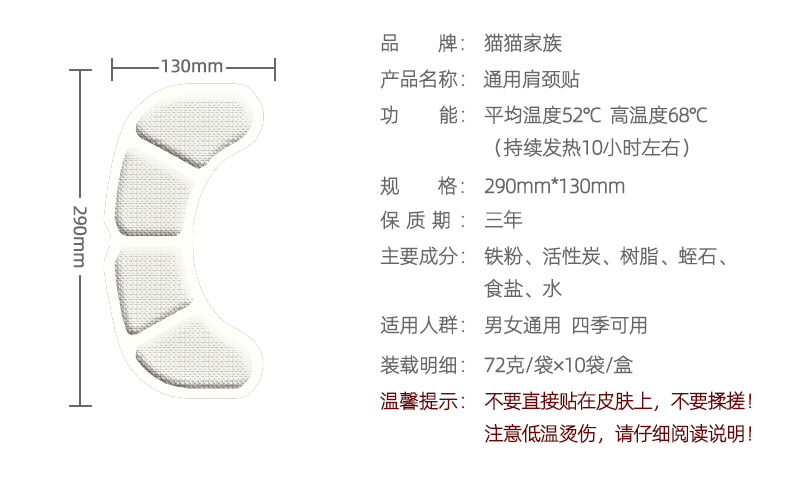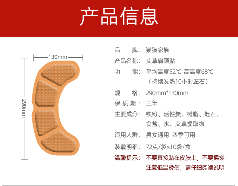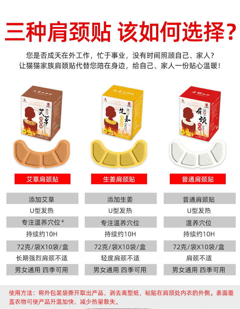 【猫猫家族】生姜艾草颈椎热敷贴,选用优质新原料,科学配比,恒温稳定,持续发热时间长达10小时,四层无纺布,柔软舒适,四季可用,U形设计,更加贴合人体,有效缓解改善肩颈【赠运费险】