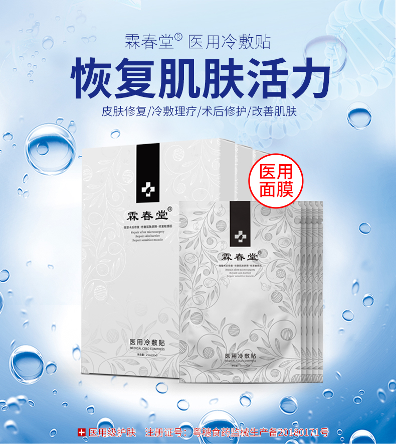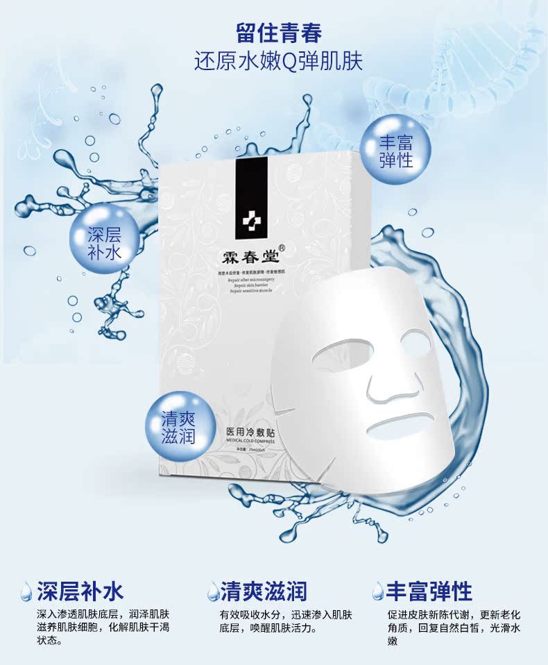 霖春堂医用面膜冷敷贴,术后修复、祛印、痤疮、冷敷理疗,恢复肌肤活力,改善肌肤,抑制和缓解肌肤,适合大多数敏感肌肤,激光后肌肤修复,械字号,权威机制检测认证