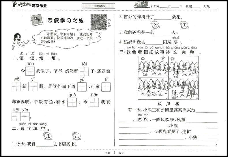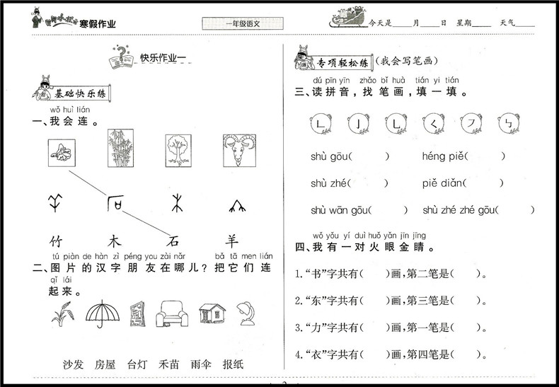 2020黄冈小状元一年级寒假作业语文数学全套 小学一年级上册寒假作业 黄岗一年级寒假昨业全套 小学生寒假练习册幼儿园大班测试题