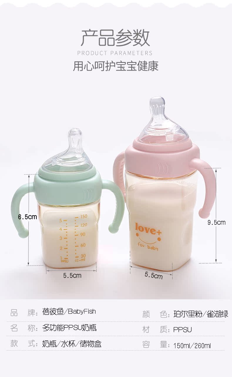 新生婴儿奶瓶ppsu吸管储奶防摔带手柄防胀气吸管大宽口径宝宝奶瓶