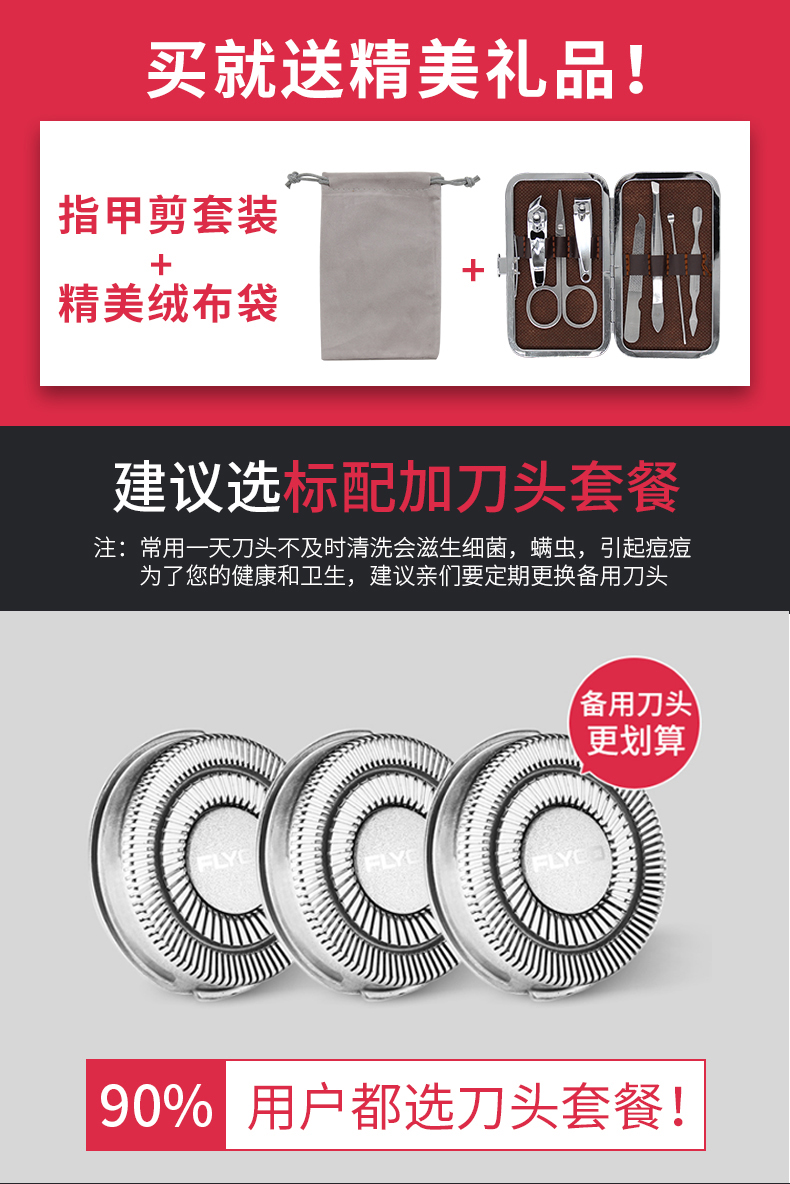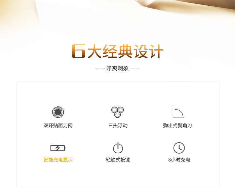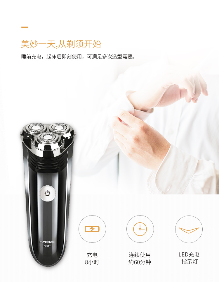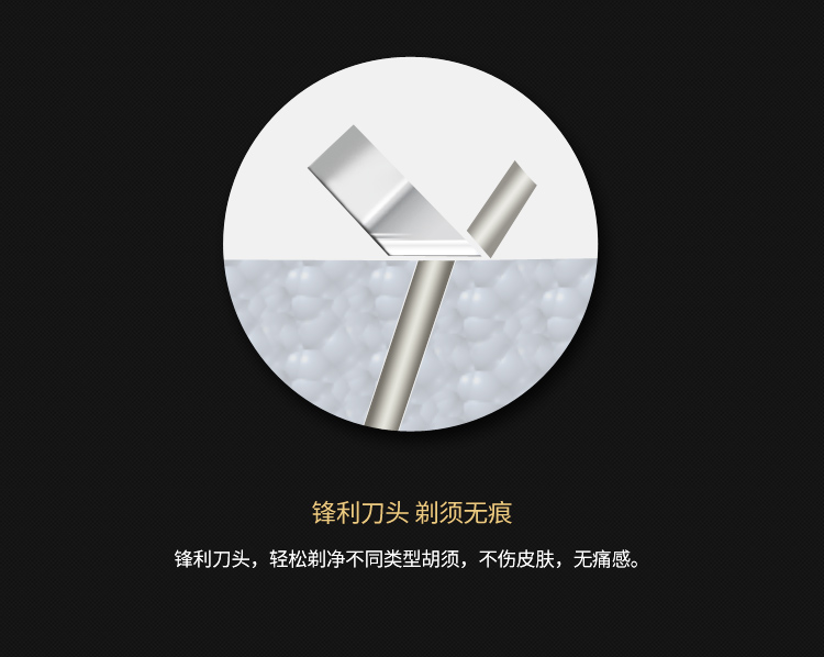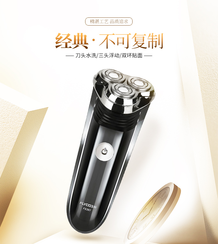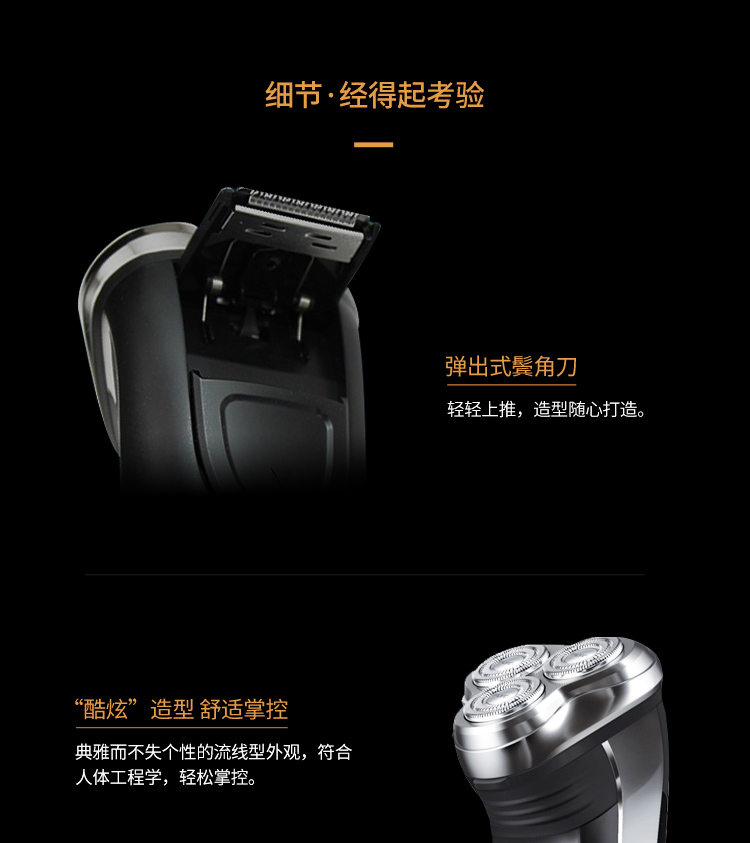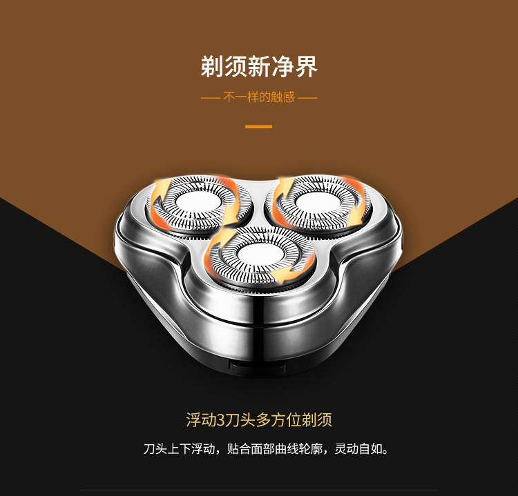 全身水洗,三头浮动,双环贴面刀网,人体工学设计,不夹须,时尚外观,男士必备