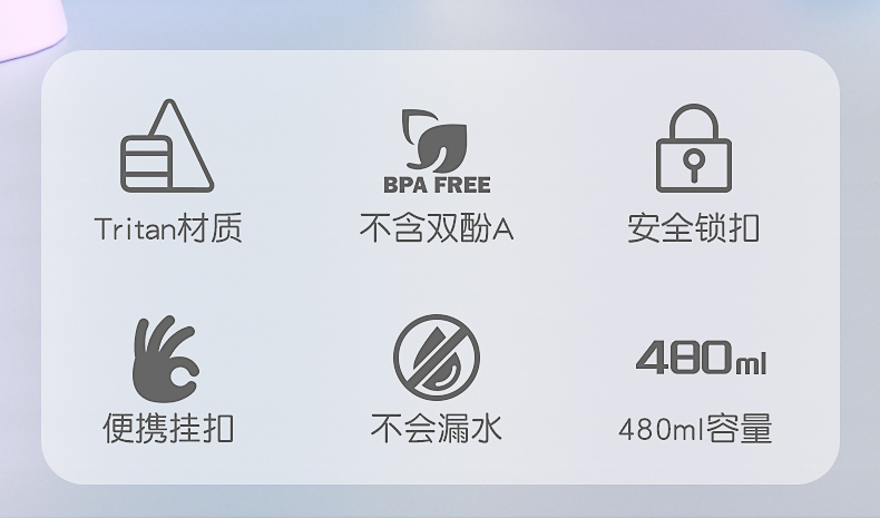 进口tritan材质,食品材质,不含双酚A,一键开合,360度旋转不漏水。加厚耐摔,轻巧方便,一键式弹盖,单手也可以喝水哦~【赠运费险】