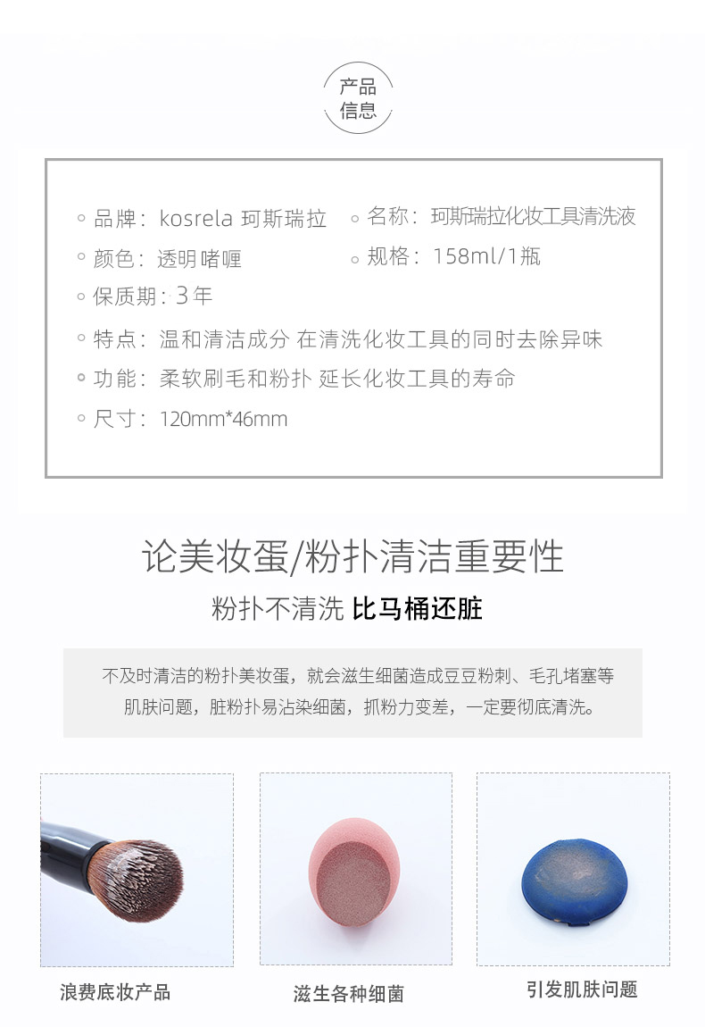 温和清洁无残留,强力去污好帮手,化妆工具用过要及时清洗,不然会滋生细菌影响肤质!韩国kosrela粉扑清洗剂,温和洁净,0残留,清香不刺鼻。