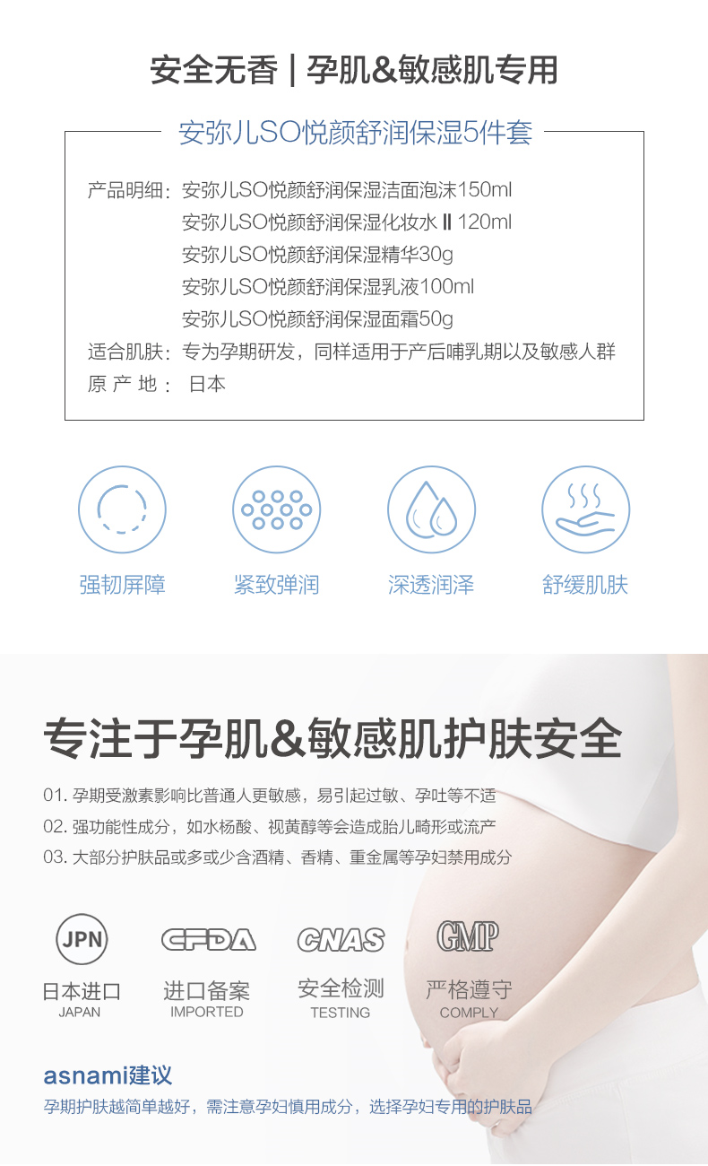 asnami安弥儿孕妇专用护肤品水乳洗面奶爽肤水精华液面霜面部套装【孕妈专用面部护肤套装】孕妇护肤套装,日本原装【天猫正品保障,新店钜惠,就此一次】