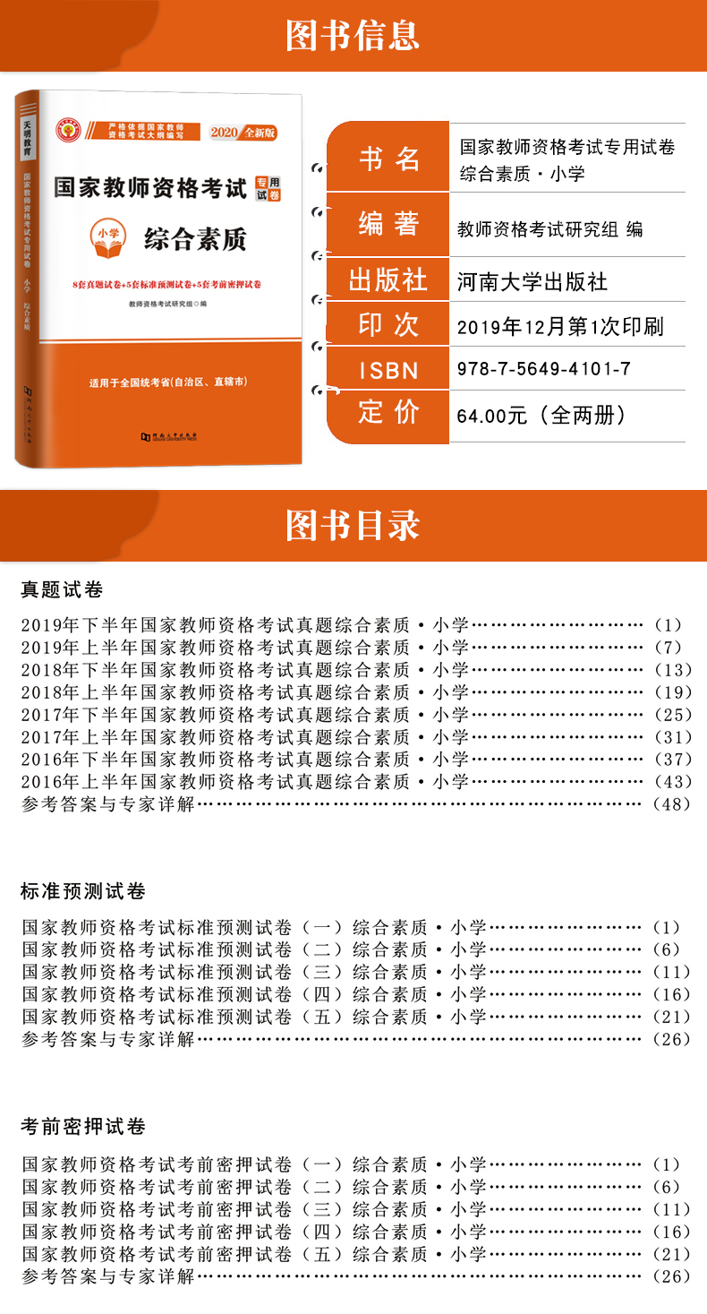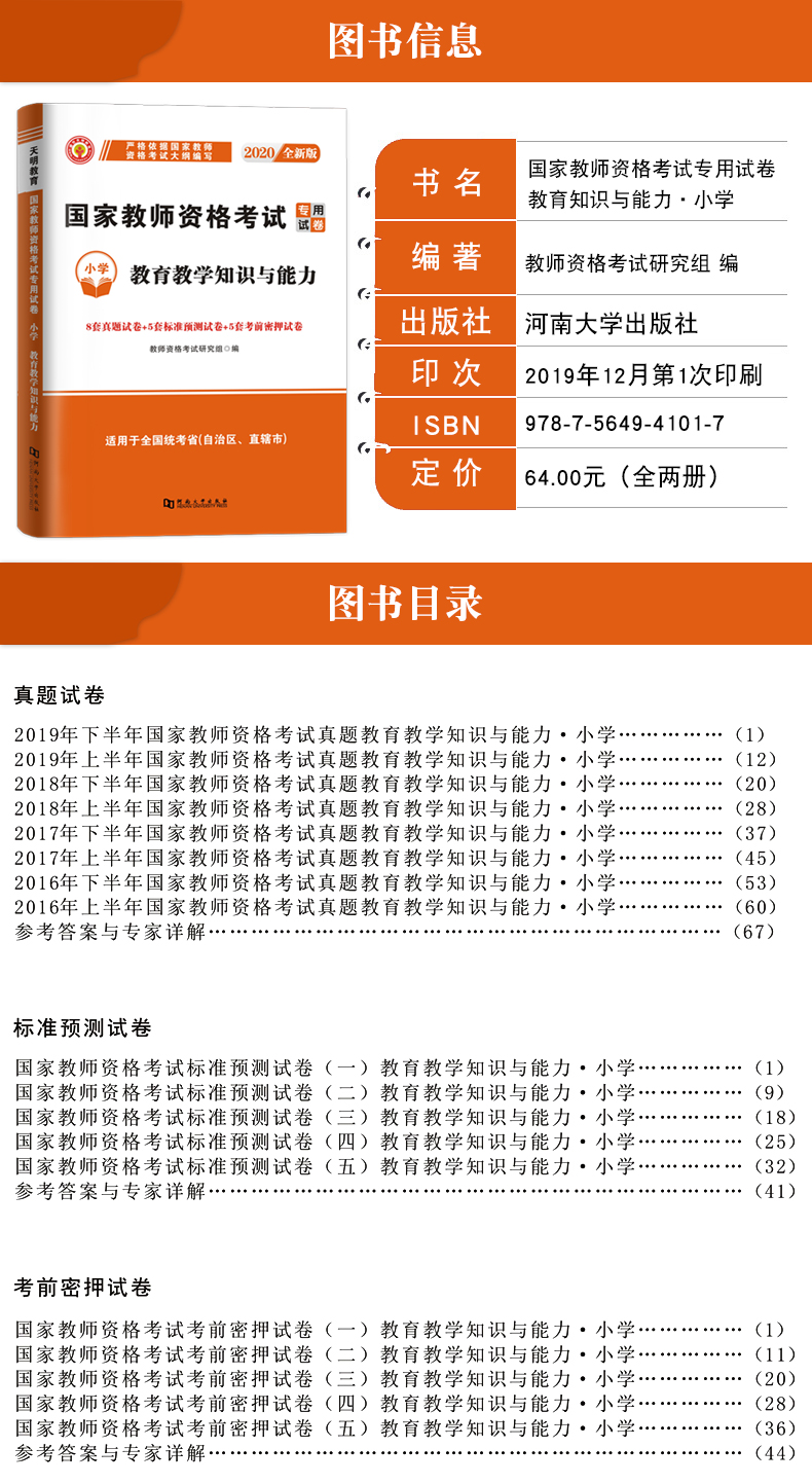备考2020年小学教师资格证考试真题国家教师资格证考试用书全国统考教师资格考试真题试卷 教育教学知识与能力+综合素质真题库2019