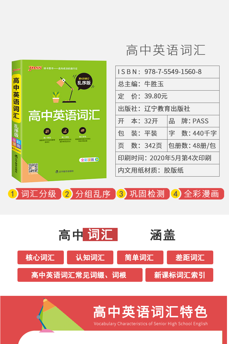 【官方旗舰店】pass绿卡图书 高中英语词汇 乱序版 全彩漫画 新高中英语词汇 词根词缀联想记忆法 人手1本