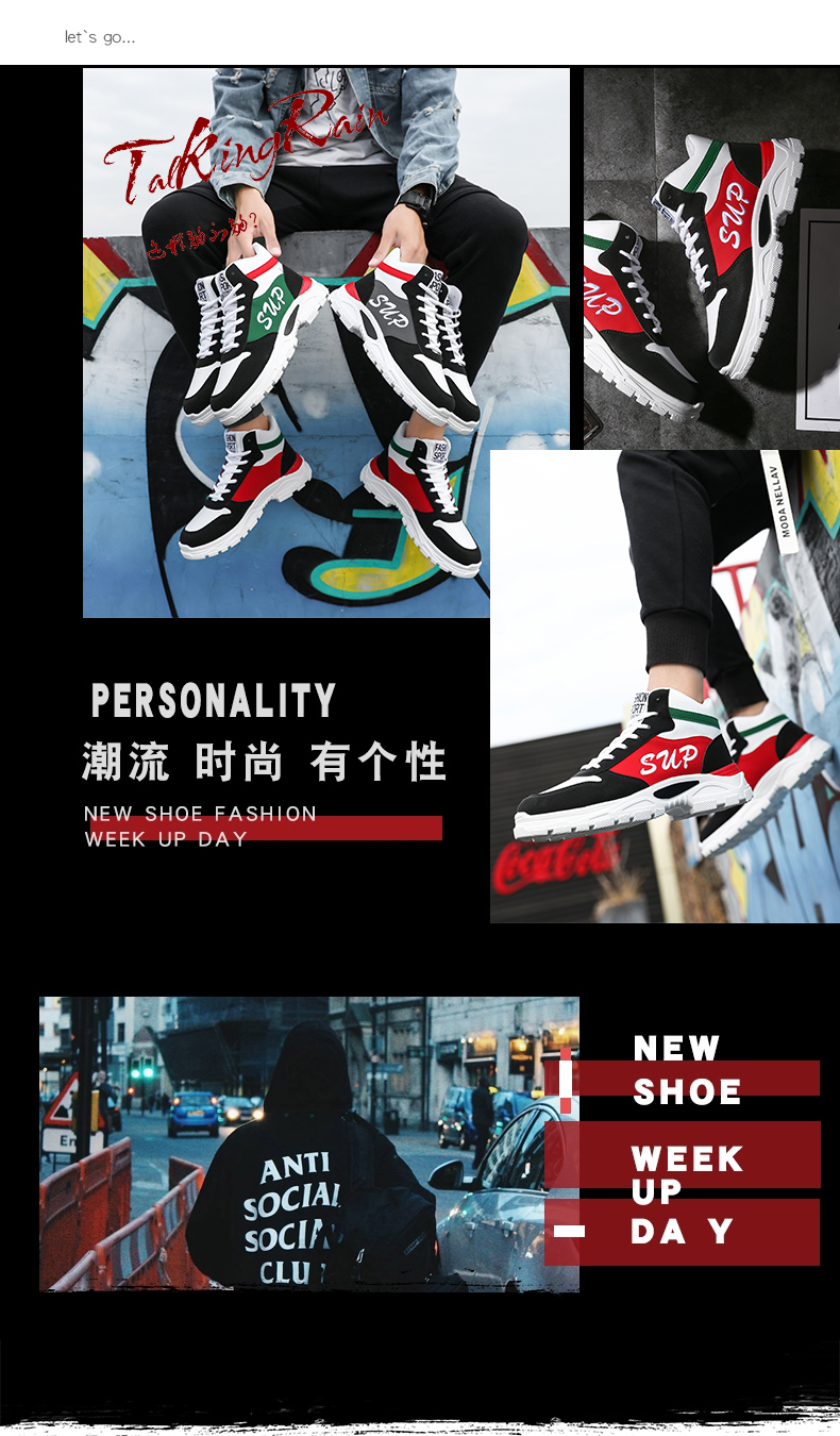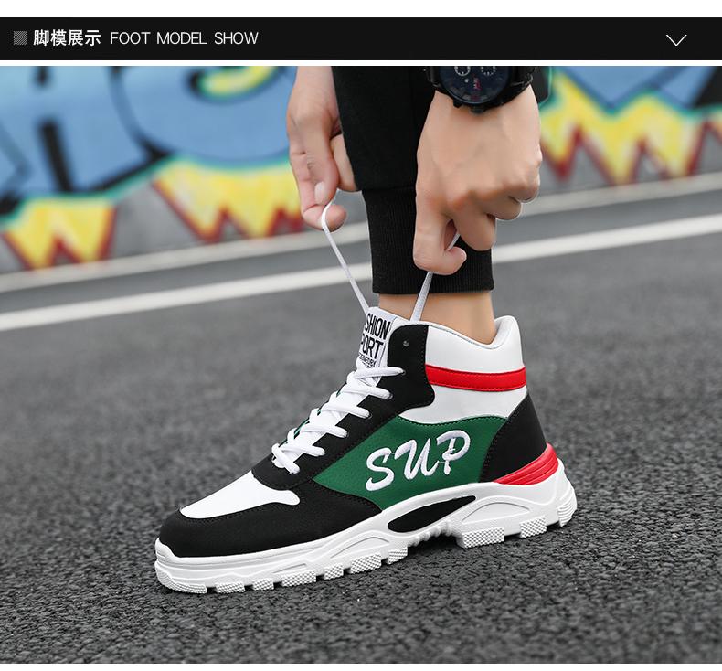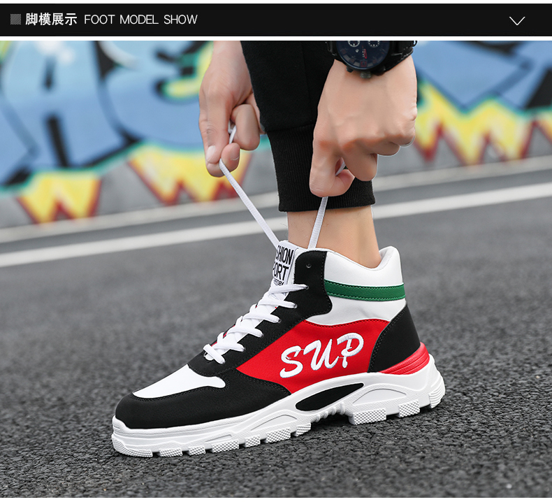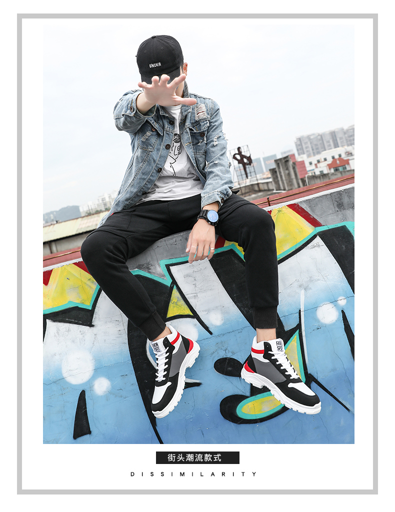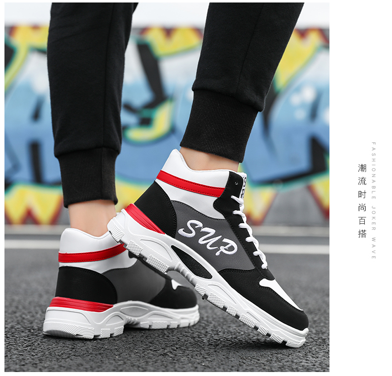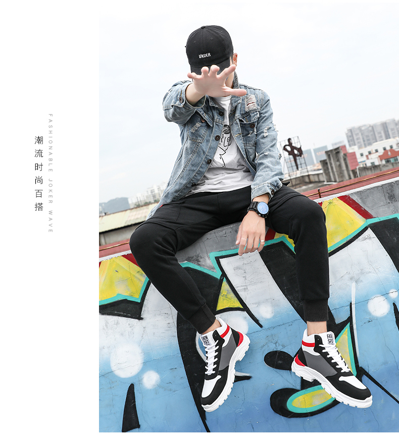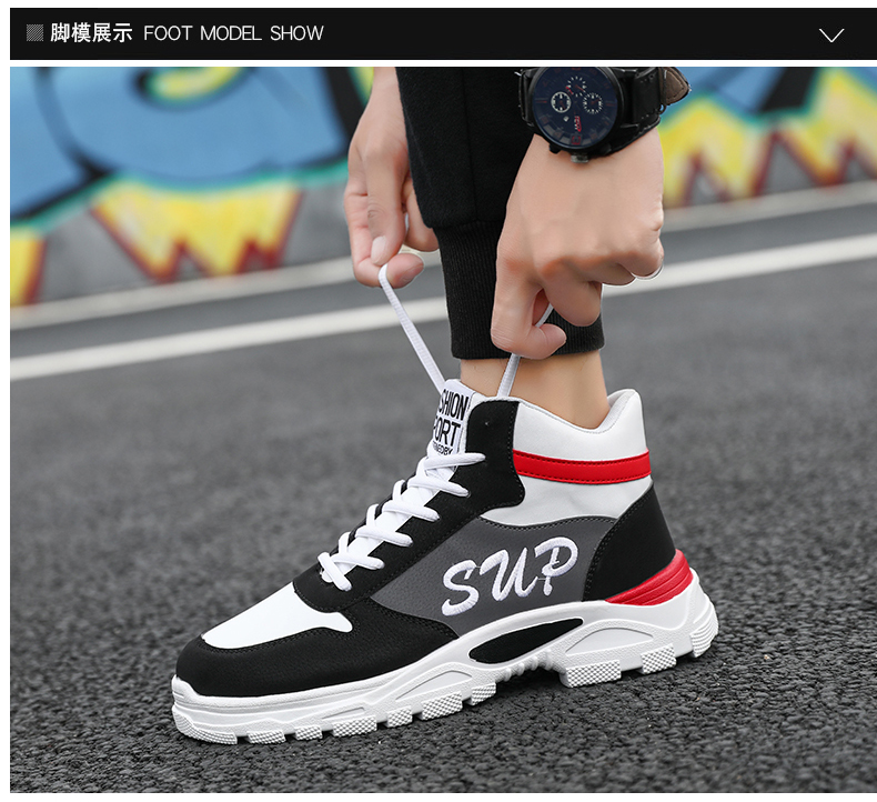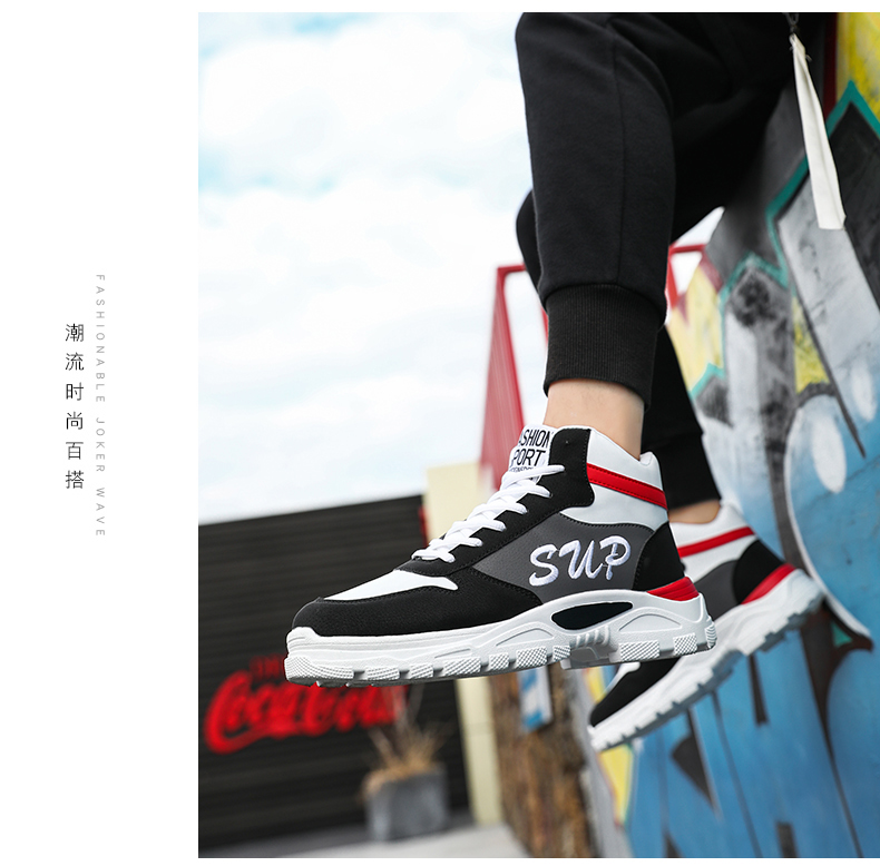 2019秋冬新款高帮板鞋,休闲运动鞋,网红潮鞋,轻便缓震,鞋内干爽舒适,鞋底凹凸纹理有效抓地,雨天湿地不打滑,款式新颖,时尚潮酷犯儿。【赠运费险】