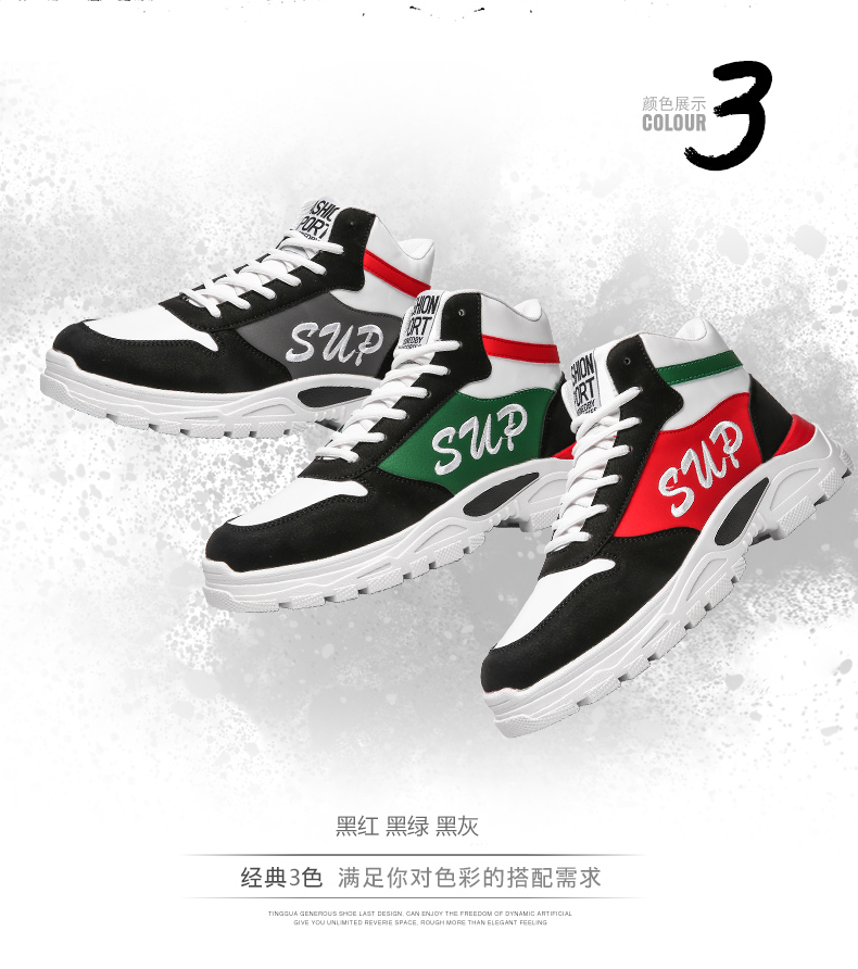高帮鞋男板鞋ins潮牌冬季百搭潮鞋运动休闲鞋秋季增高老爹鞋中邦