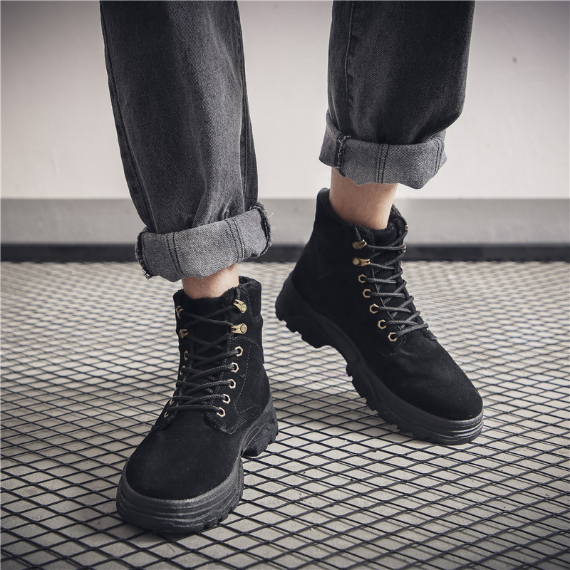 马丁靴男高帮冬季加绒加厚保暖棉鞋潮英伦风增高户外高腰雪地靴子