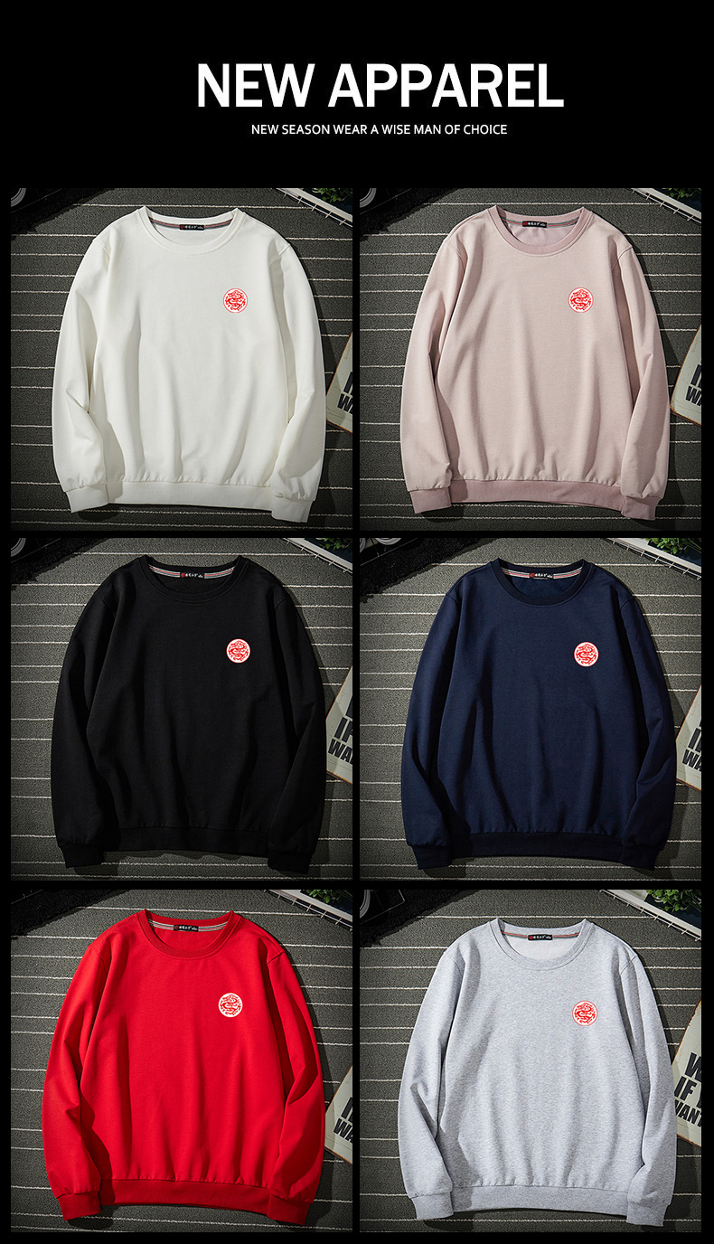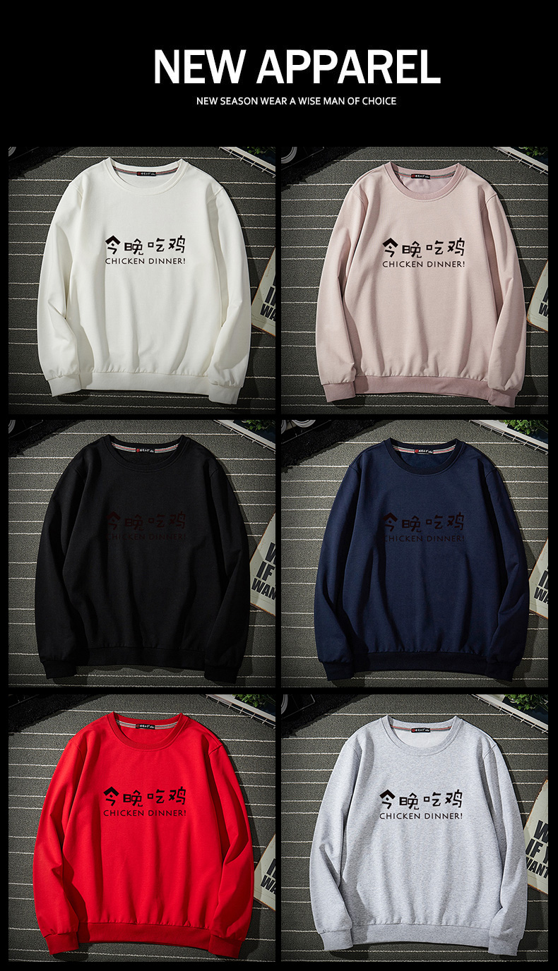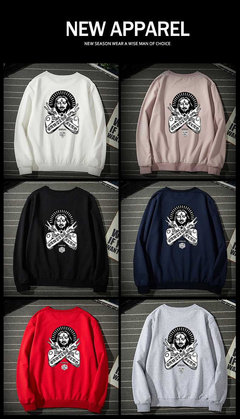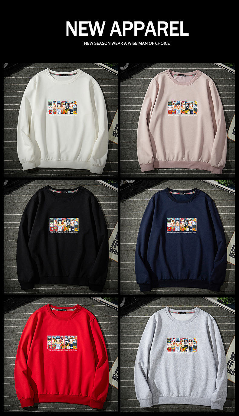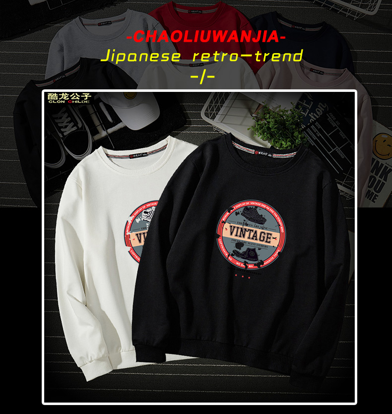 加绒圆领卫衣男嘻哈宽松港风t恤ins潮牌秋冬韩版潮流学生情侣外套