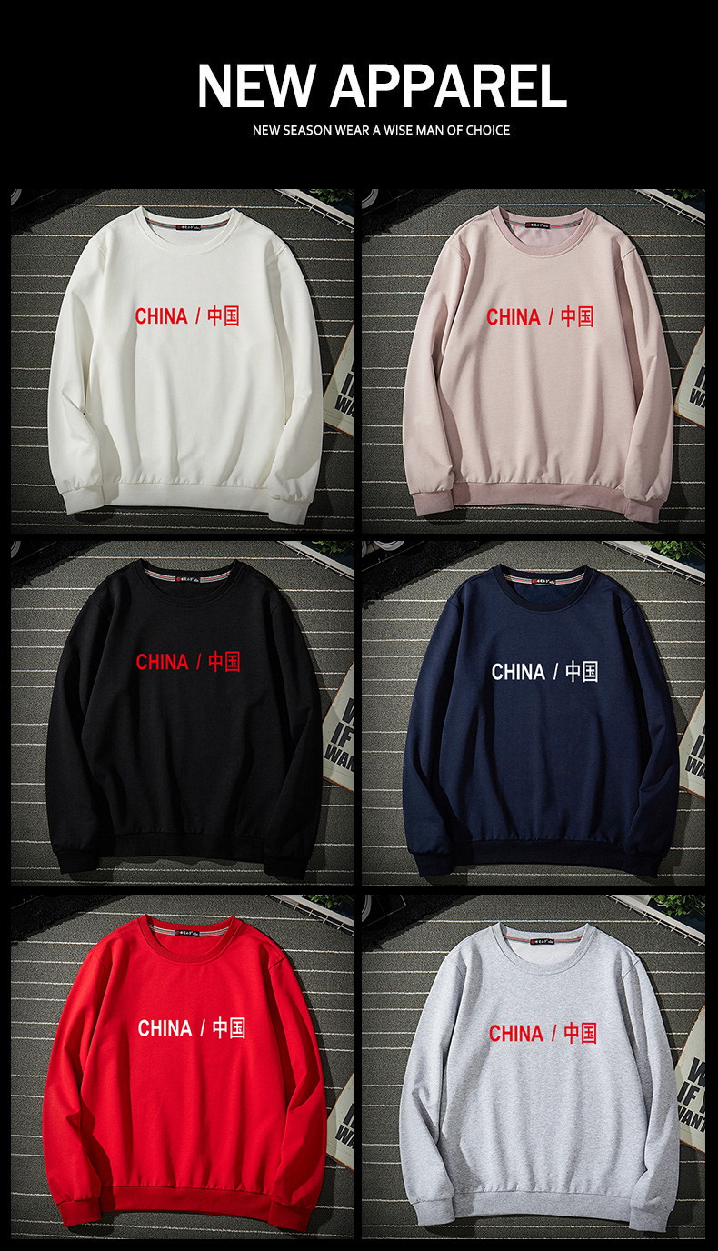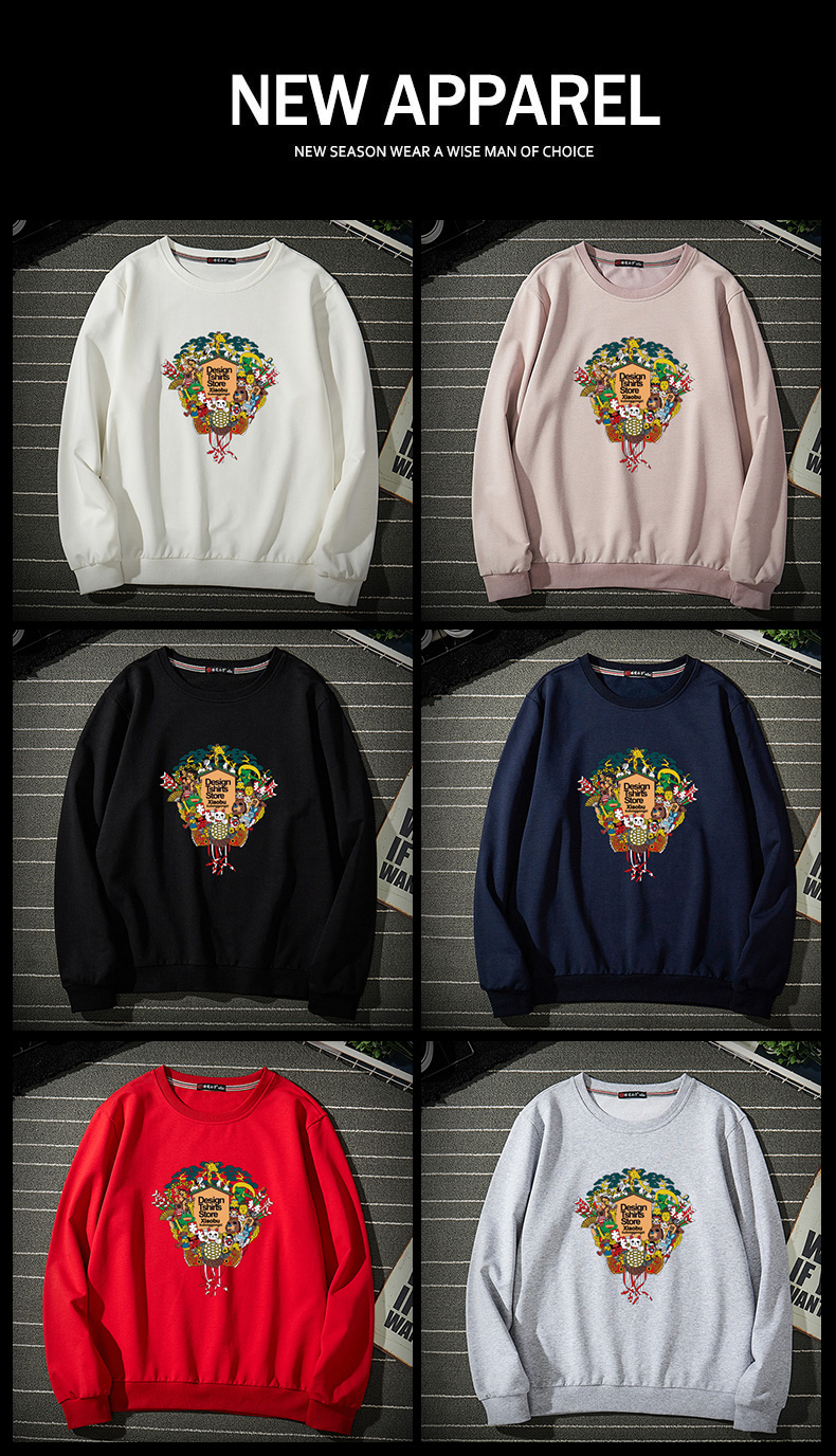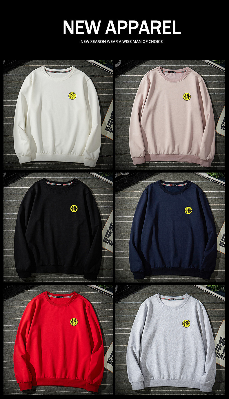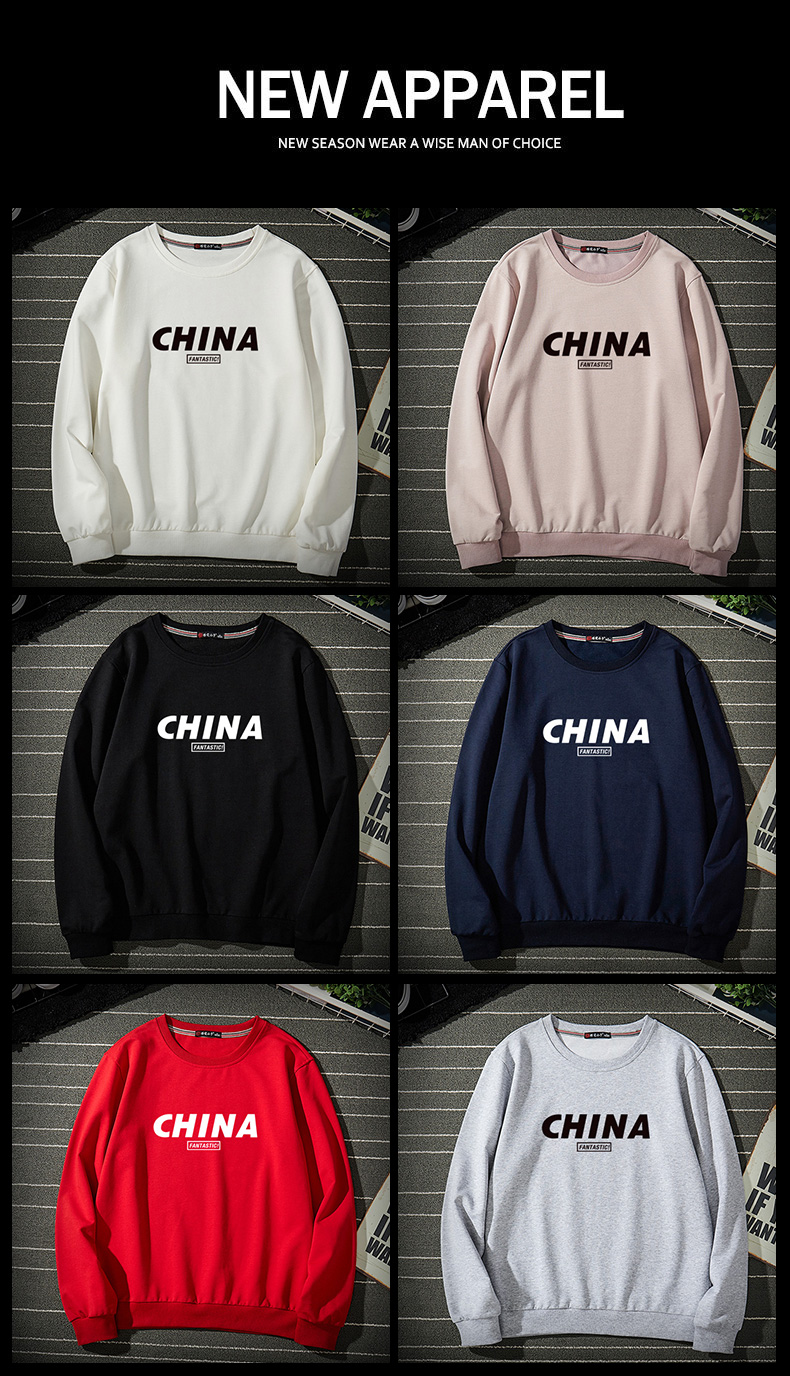 加绒圆领卫衣男嘻哈宽松港风t恤ins潮牌秋冬韩版潮流学生情侣外套