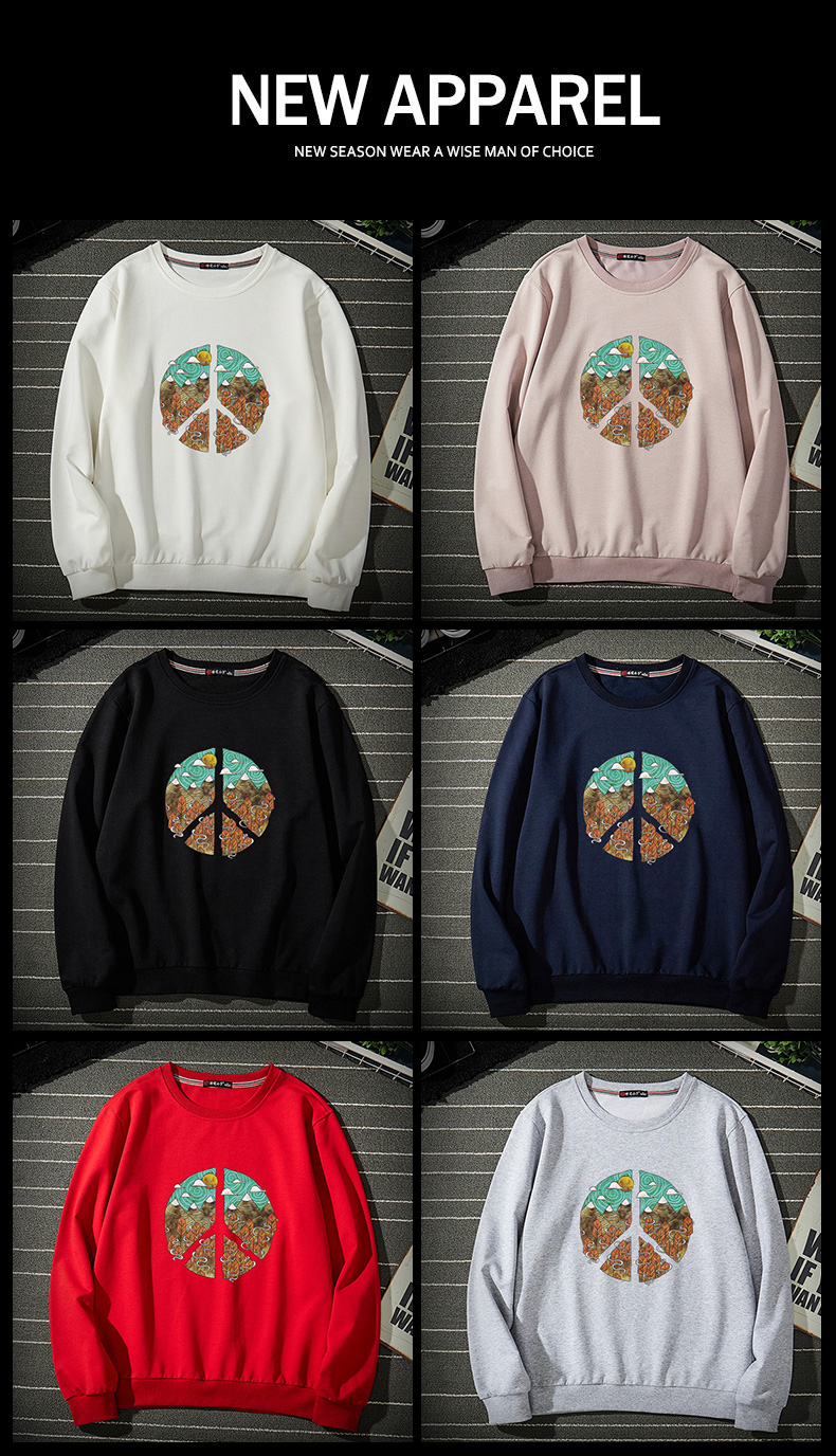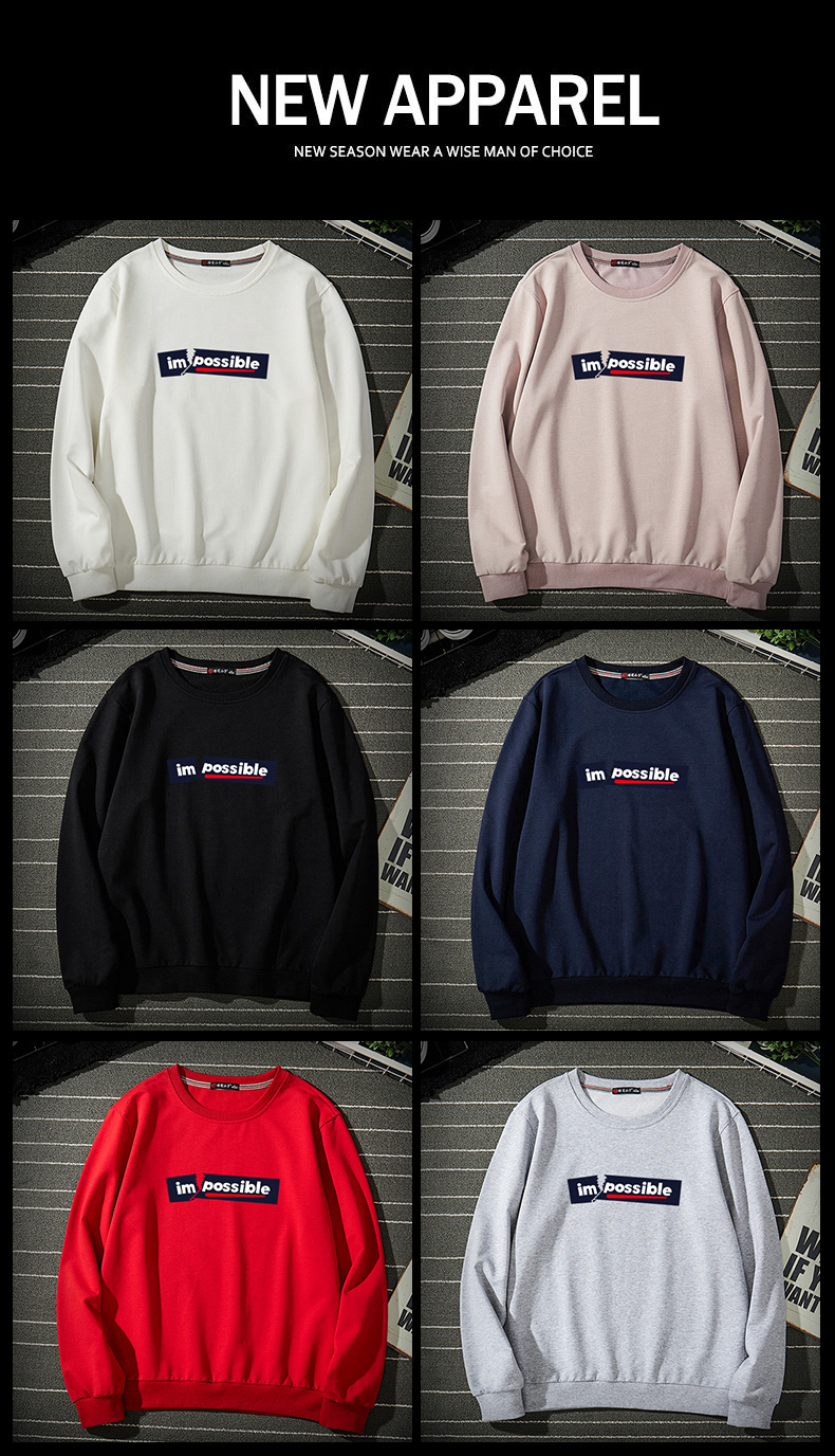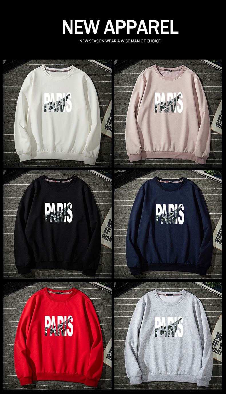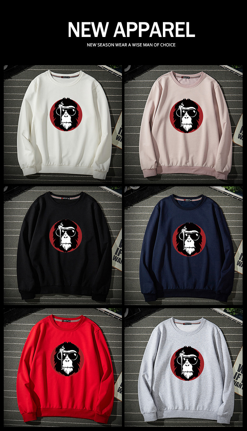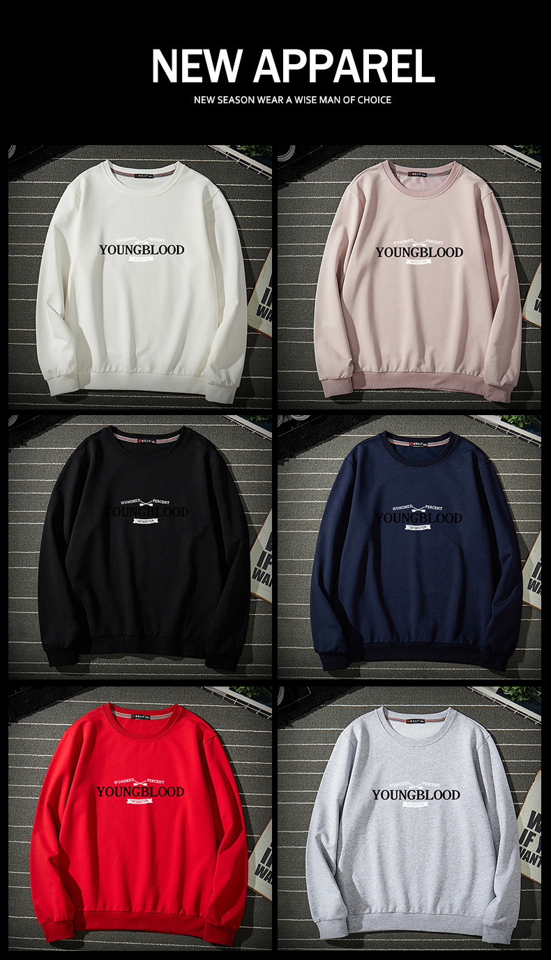 加绒圆领卫衣男嘻哈宽松港风t恤ins潮牌秋冬韩版潮流学生情侣外套