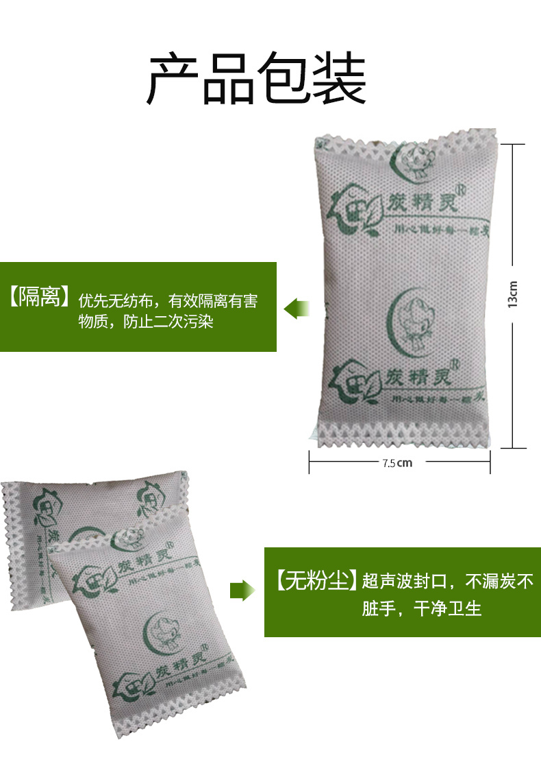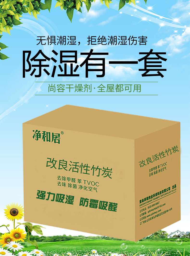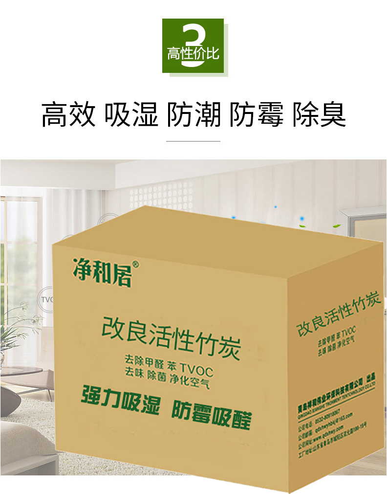 【20包1.6KG】净和居改良活性竹炭,可循环使用三年,强力防潮防霉吸附甲醛,防漏无纺布包装,有效隔离有害物质,防止二次污染。可用于室内衣柜书柜、厨卫等环境,新家装修除醛、新车除醛等。居家必备~