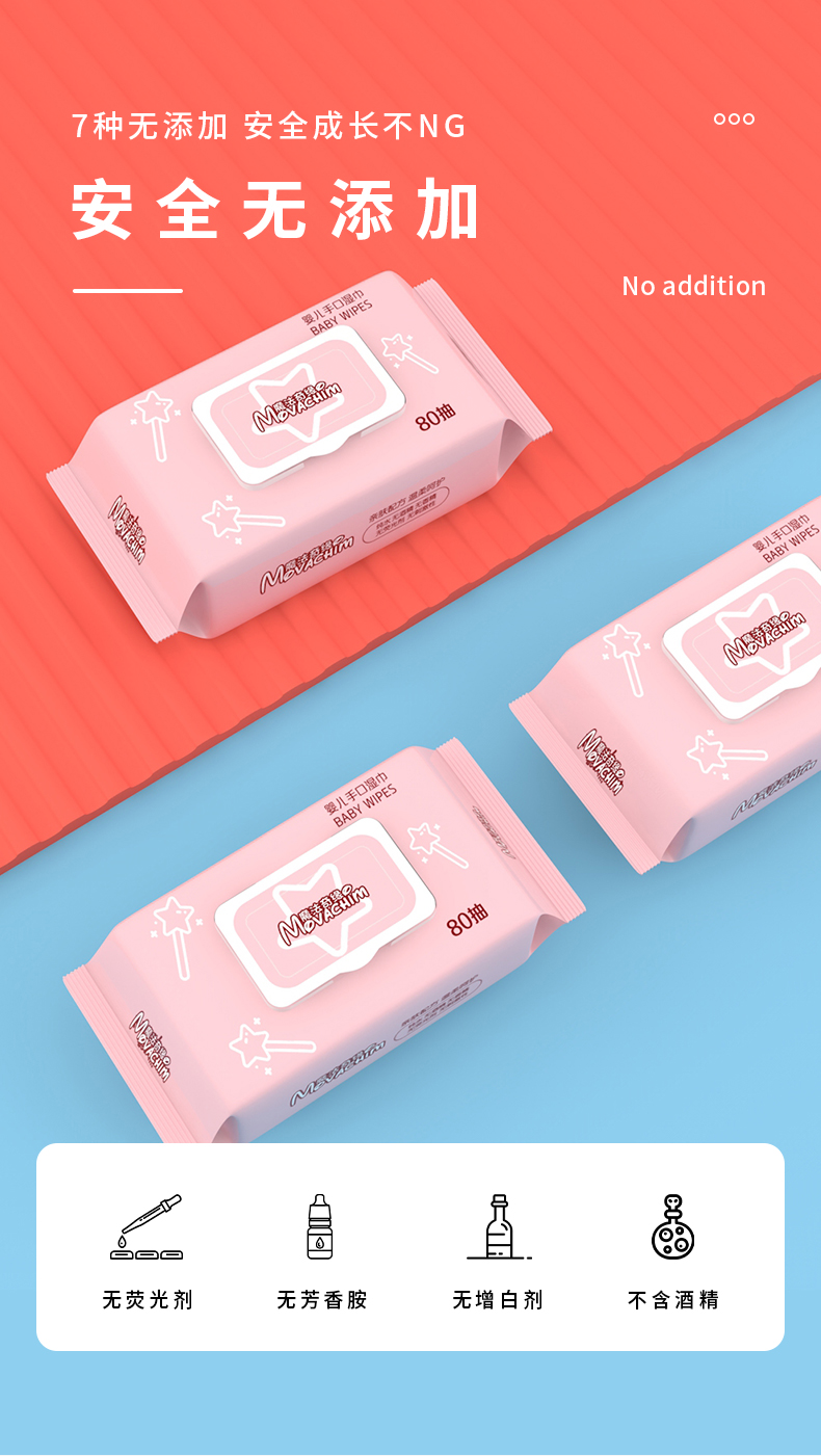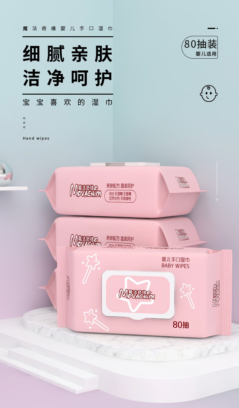 魔法奇缘湿巾婴儿手口专用宝宝屁湿纸巾大包装特价家用80抽5大包