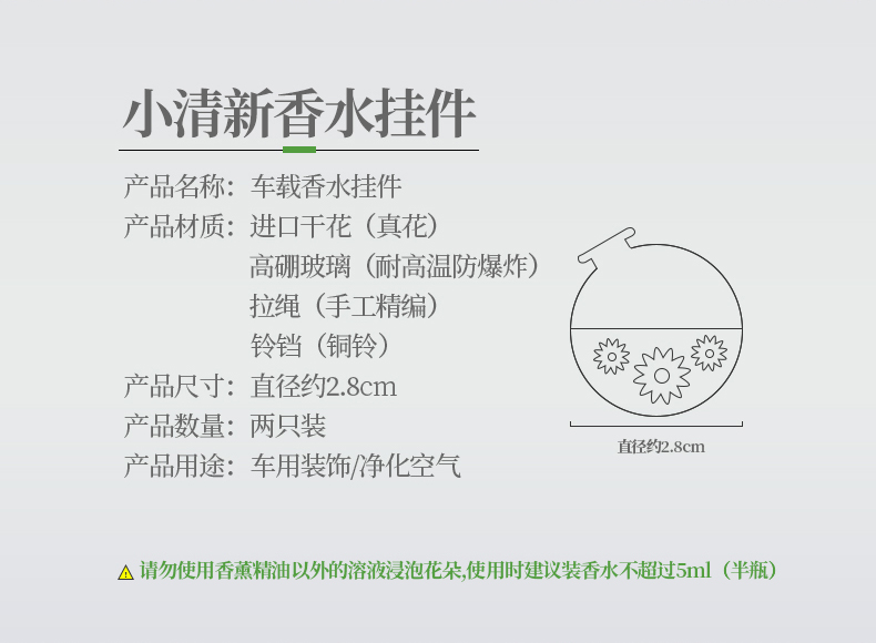 【持久留香】小清新车载香水,手工制作,环保无毒,孕婴可用!耐高温!自然芳香,去除异味,4种香味可选,让您的爱车暗香浮动,尽享移动空间淡香浪漫之旅~