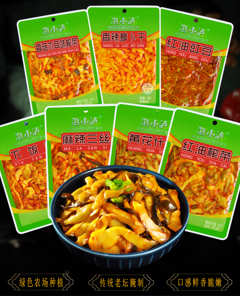 四川下饭菜榨菜系列七口味香辣萝卜干红油豆角爆开胃酱菜小包袋装