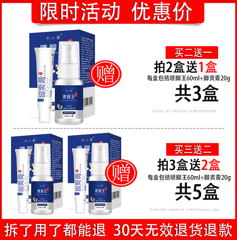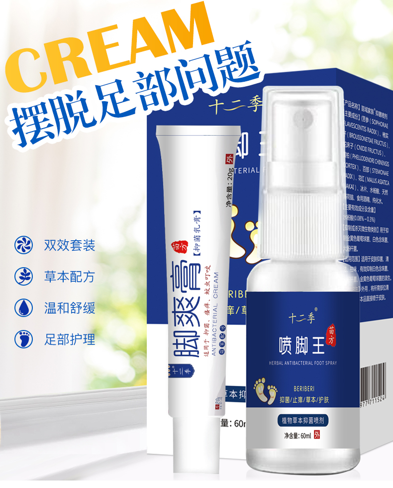 脚臭多汗、脚痒、烂脚丫、起水泡等、严重影响生活;十二季双效脚气套装,一喷一涂,轻松解决你的难言之隐,多种珍贵中草药萃取而成、安全配方,使用方便,快速杀菌!【赠送运费险】