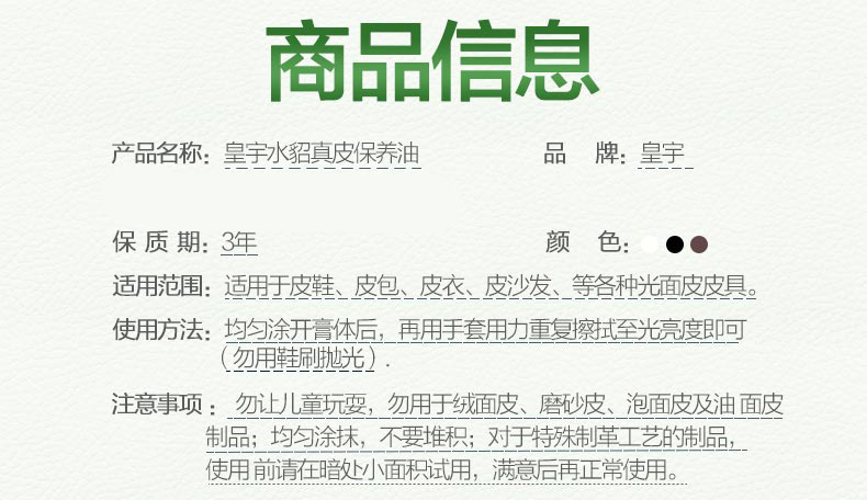 皇宇水貂保养鞋油,深层滋养皮革,补色防水护理,持久养护旧鞋变的和新鞋差不多哦,让您的皮具变亮重换光彩。