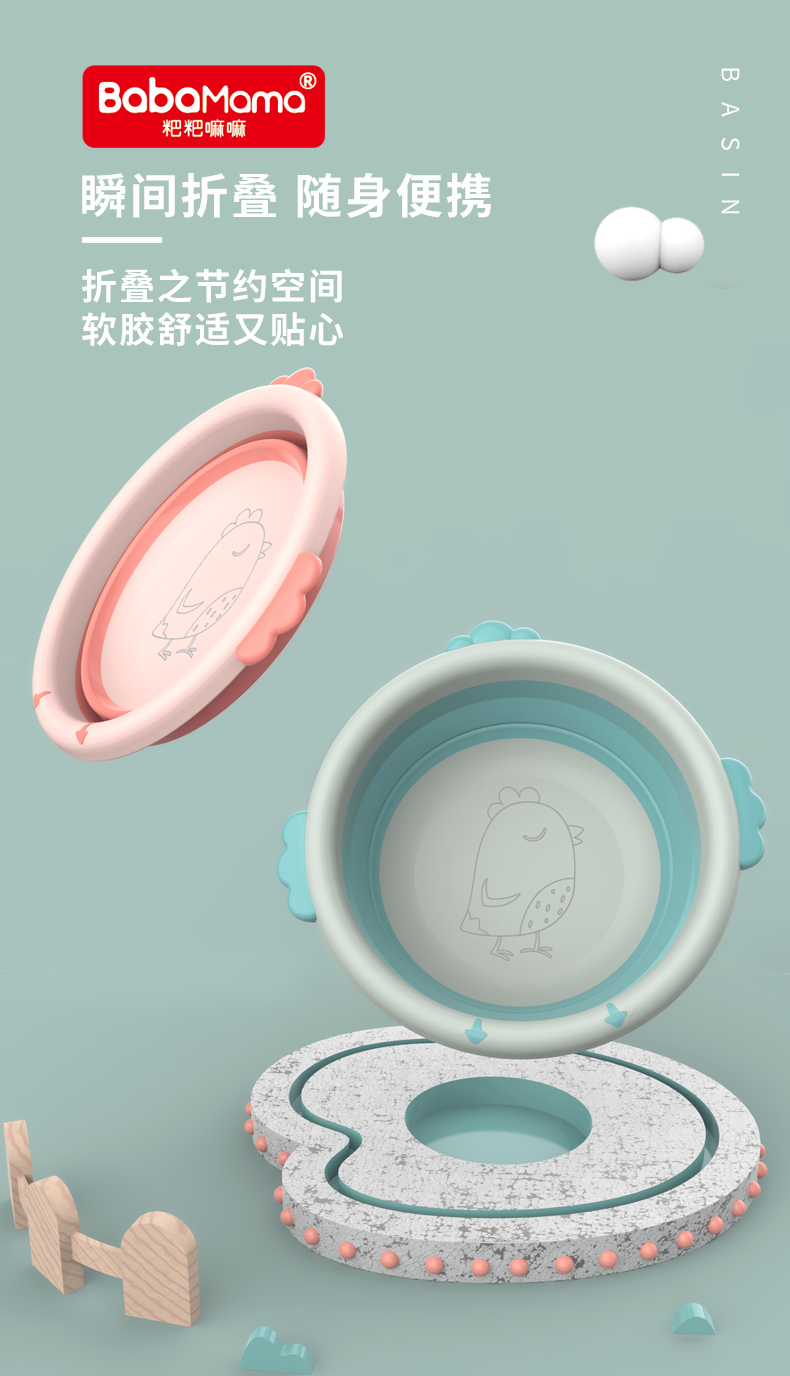 粑粑嘛嘛2个装3初生新生婴儿童用品可折叠洗脸盆卡通PP宝宝小盆子