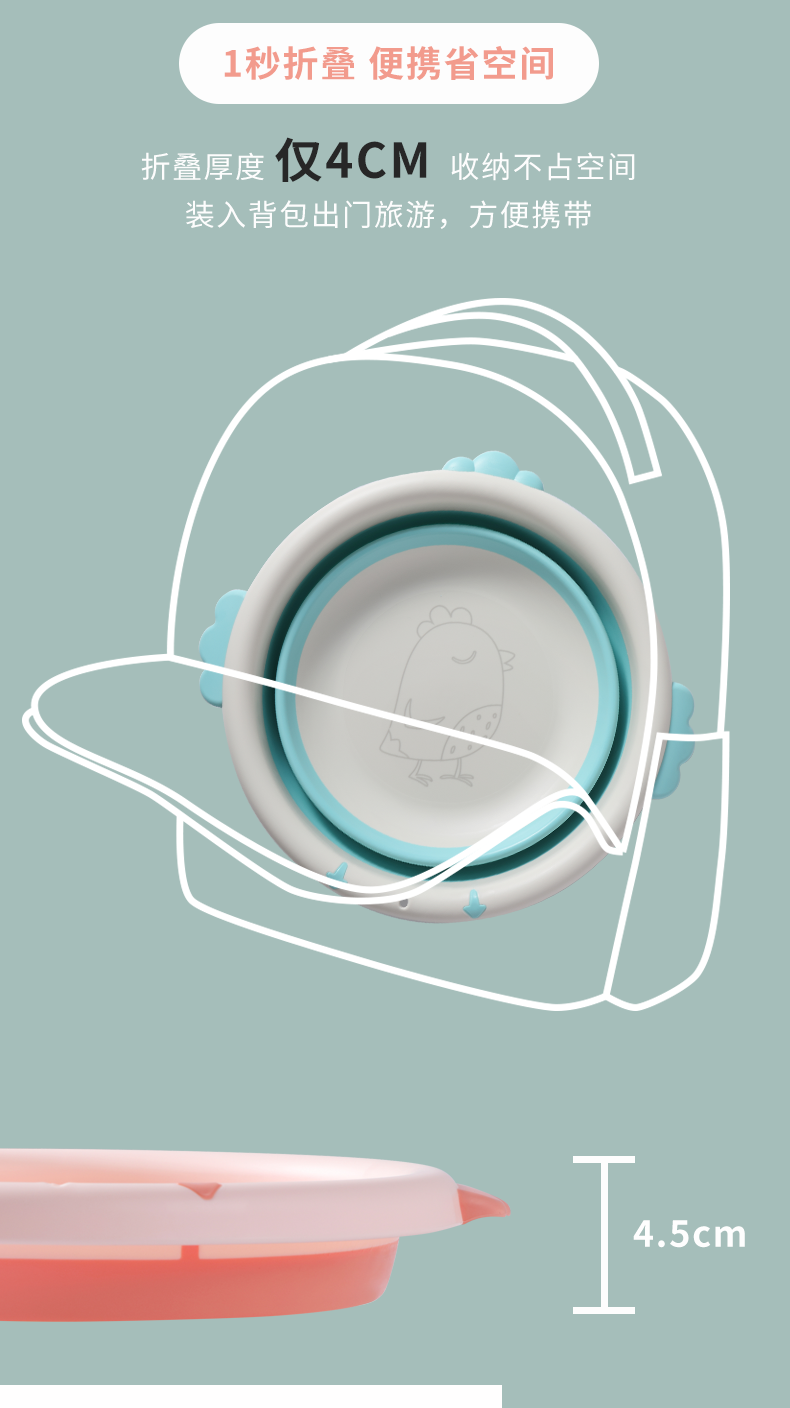 【一秒折叠】儿童专用小盆子,采用环保材质,耐高温,耐低温,健康安全,卡通造型,随身携带,权威认证,打造婴幼儿专用脸盆,粑粑嘛嘛买的放心~【赠运费险】
