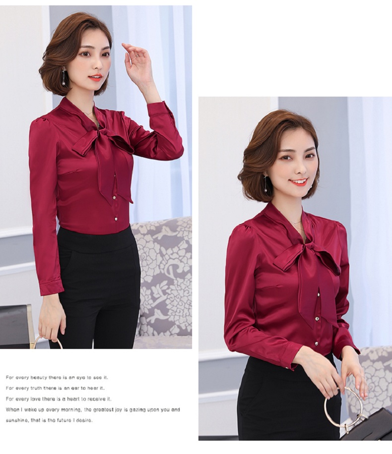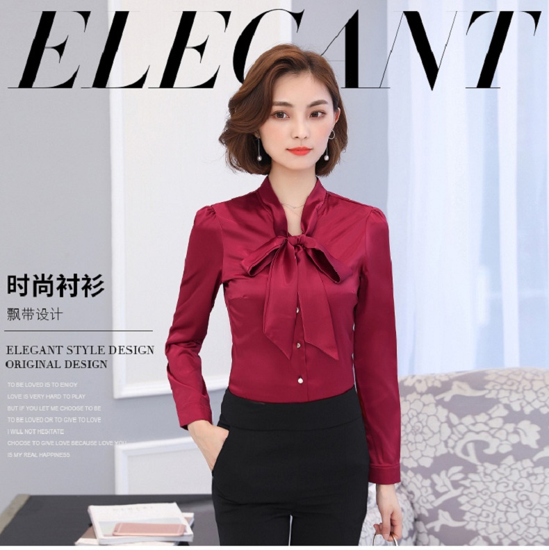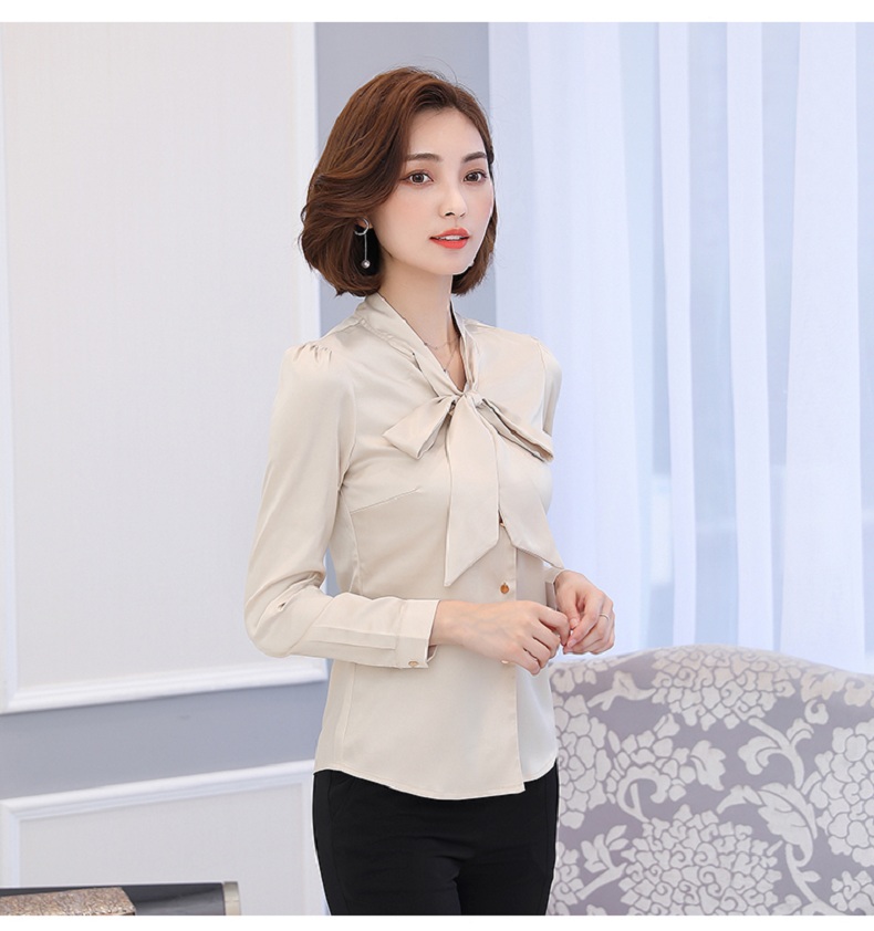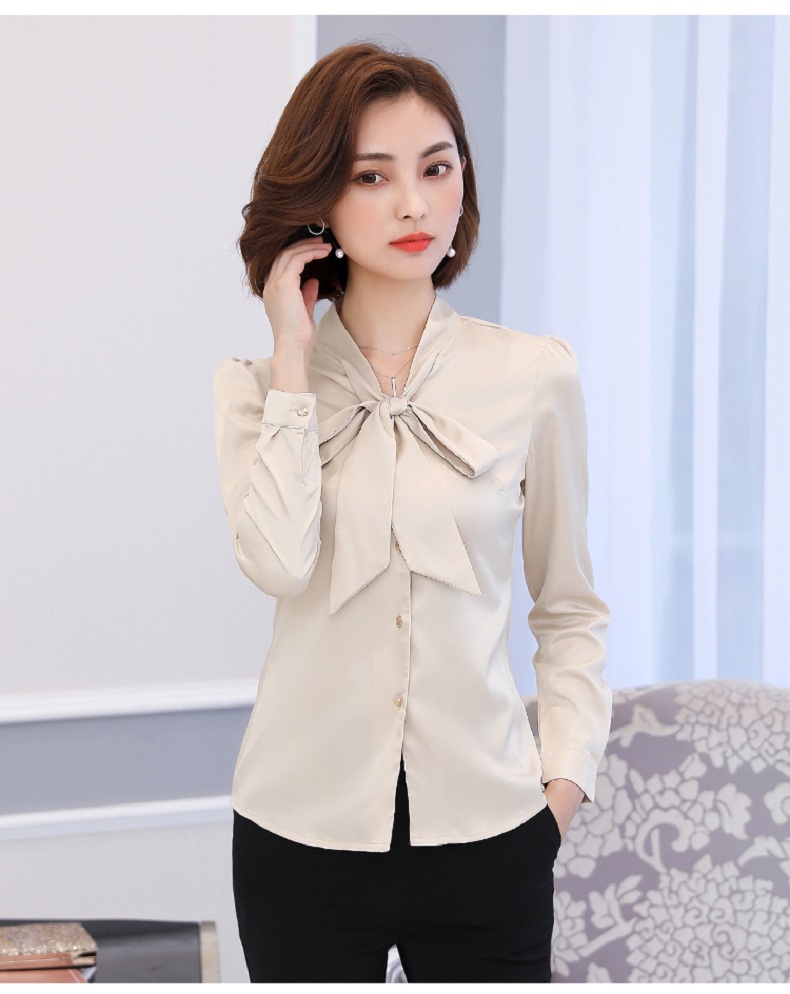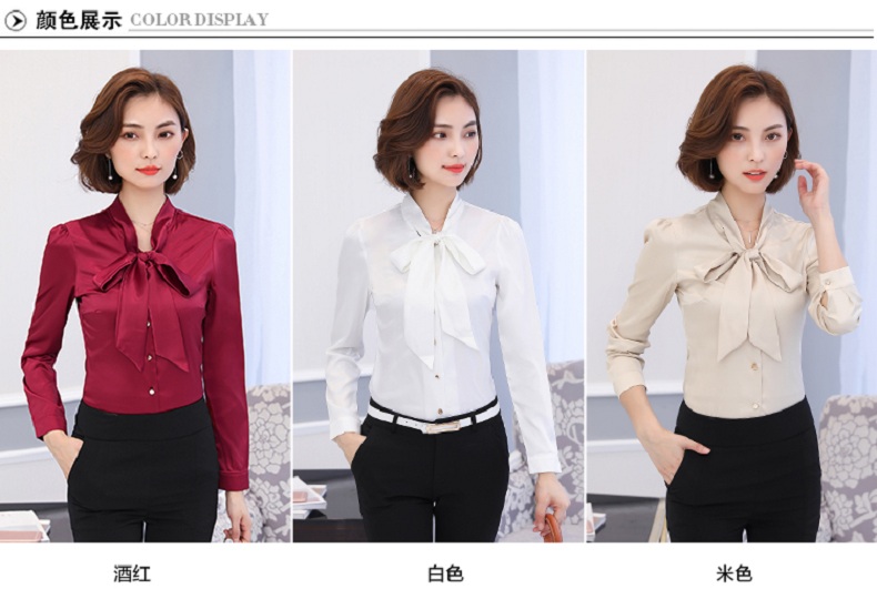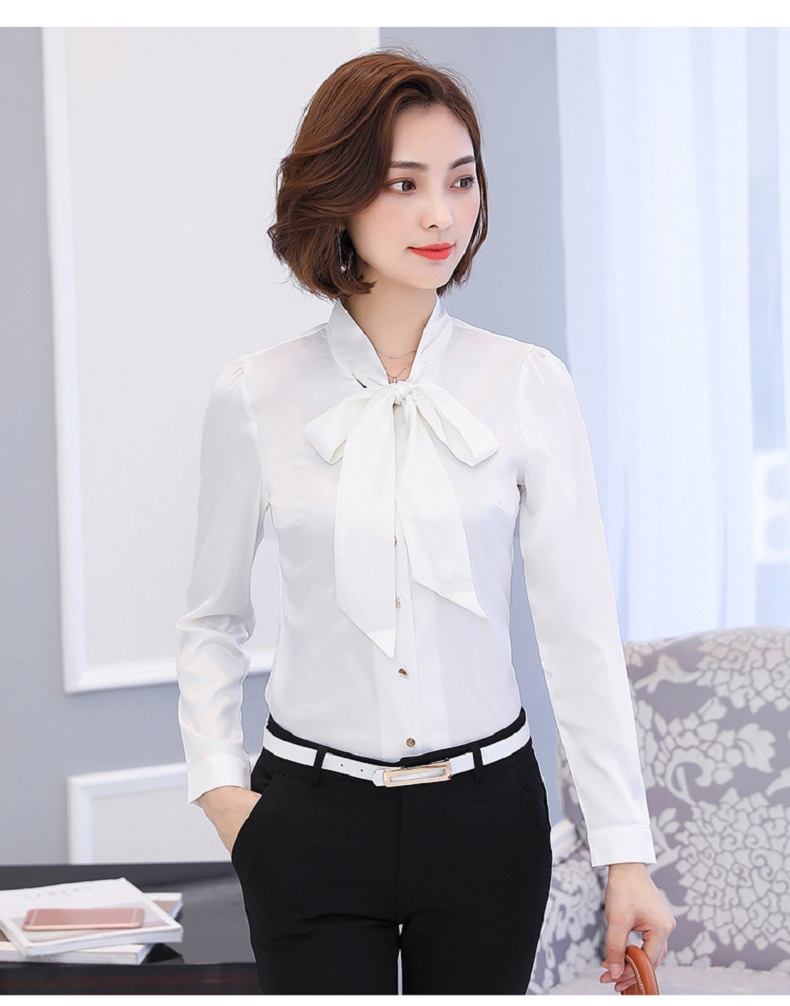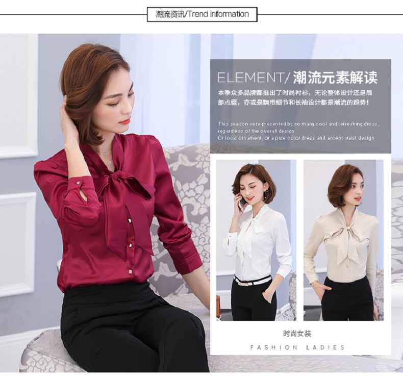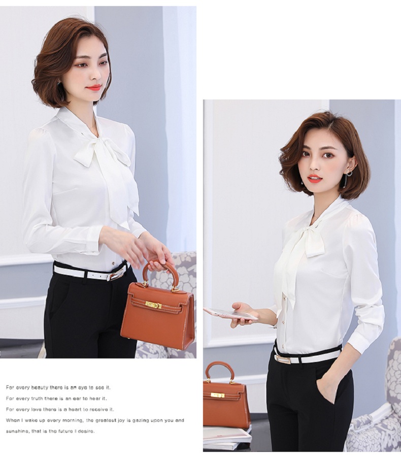 蝴蝶结衬衫女长袖雪纺衫2019秋装新款工装上衣正装职业装白色衬衣