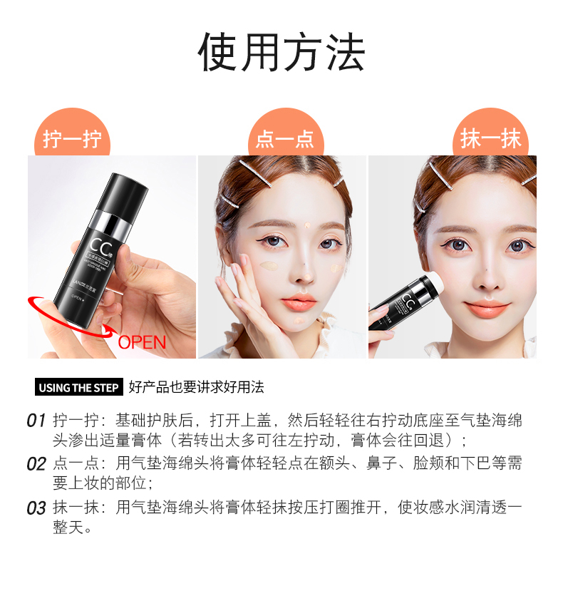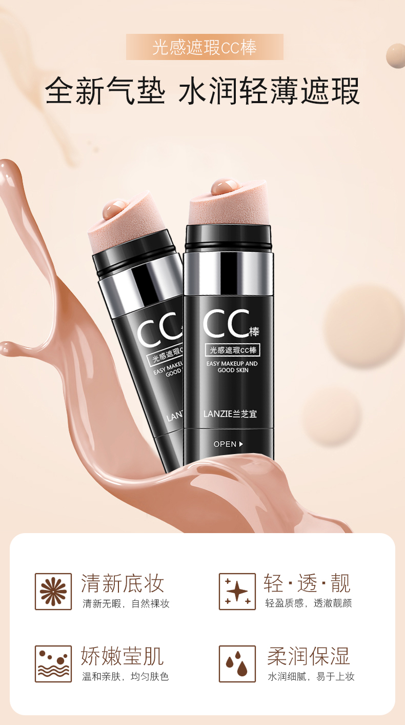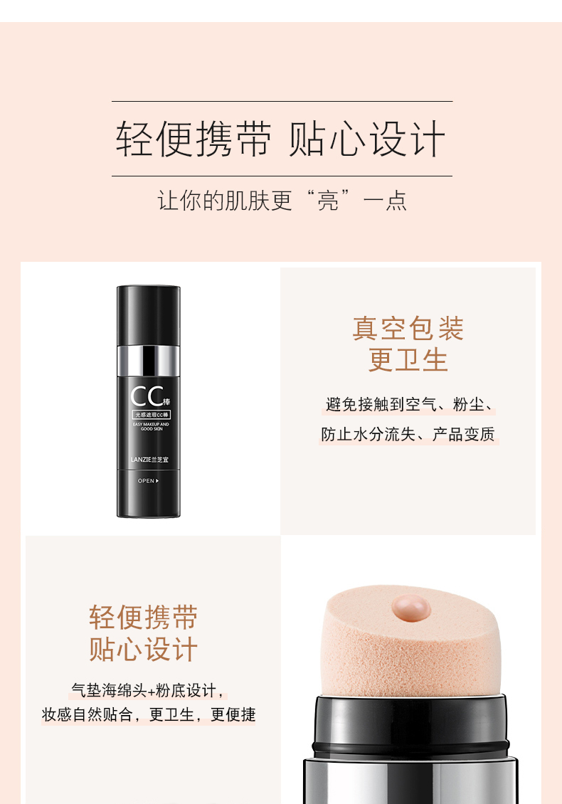 兰芝宜光感遮瑕提亮肤色cc棒补水保湿气垫bb霜防水粉底液CC霜抖音