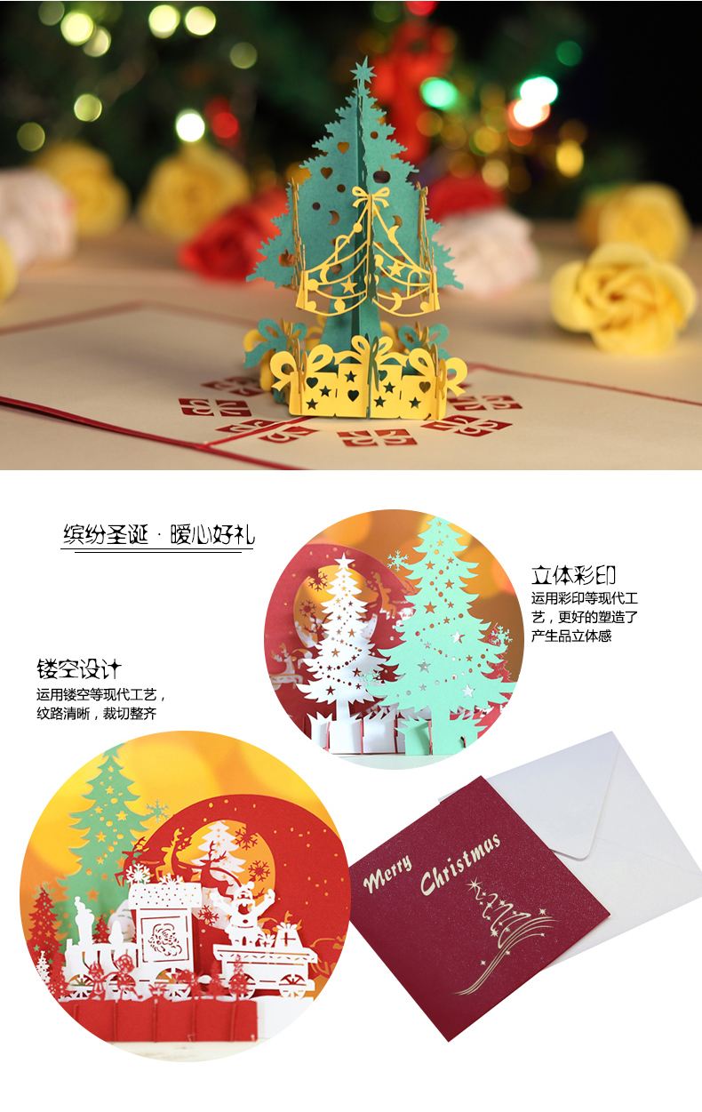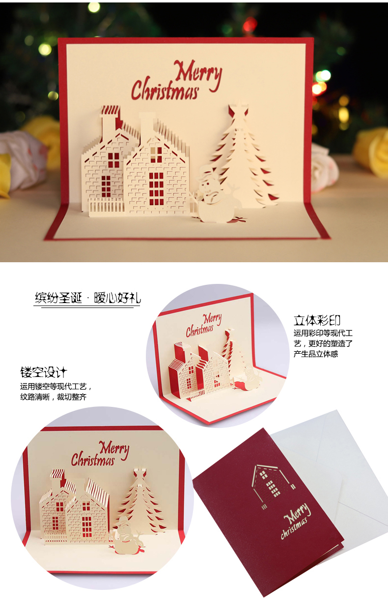圣诞节小礼品儿童创意立体贺卡礼物3d立体卡片diy手工定制可刻字