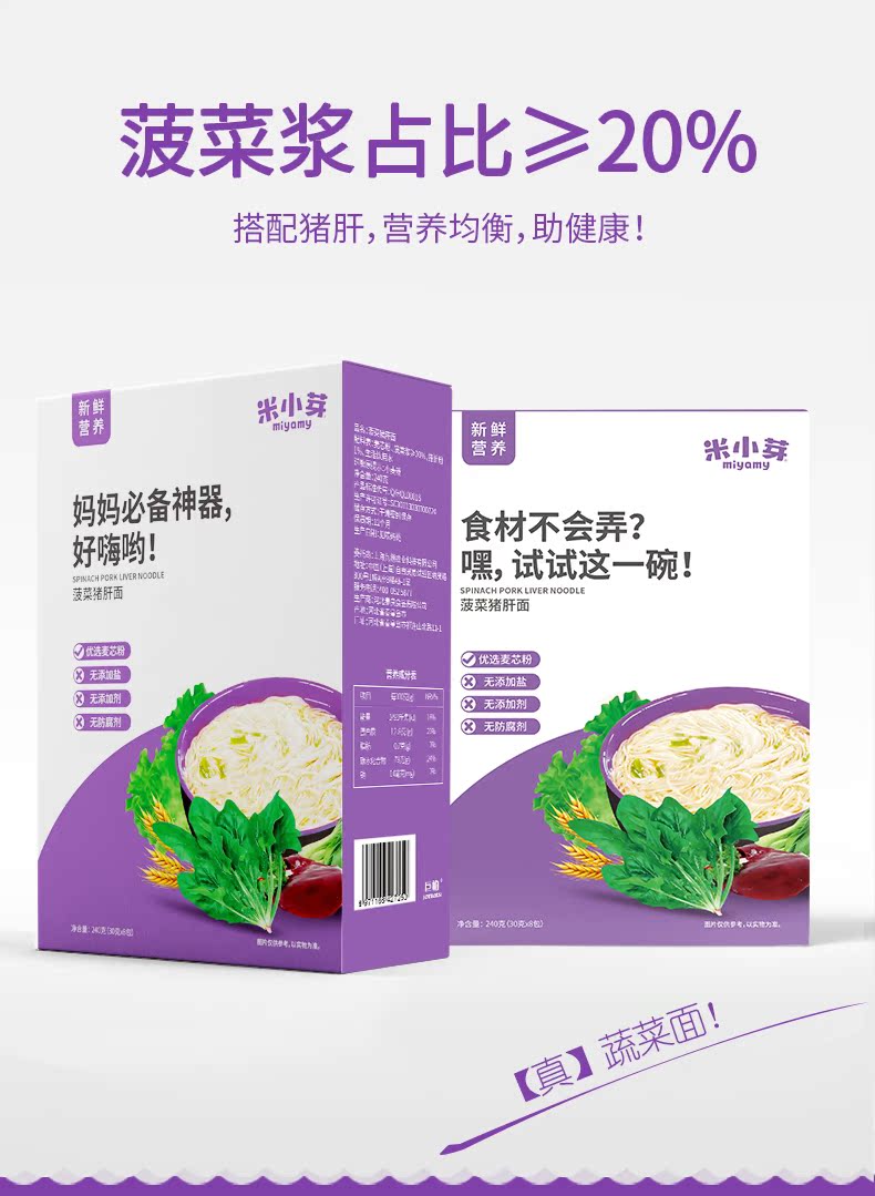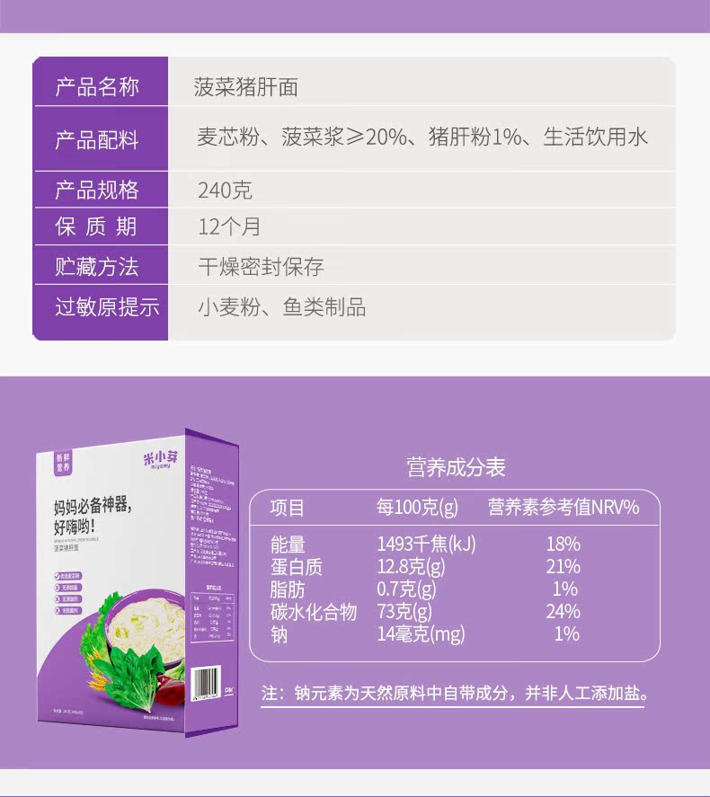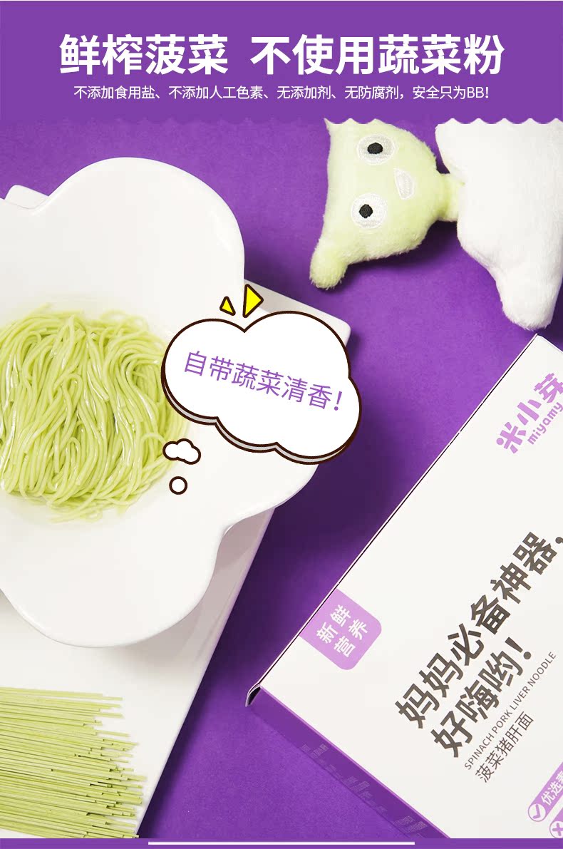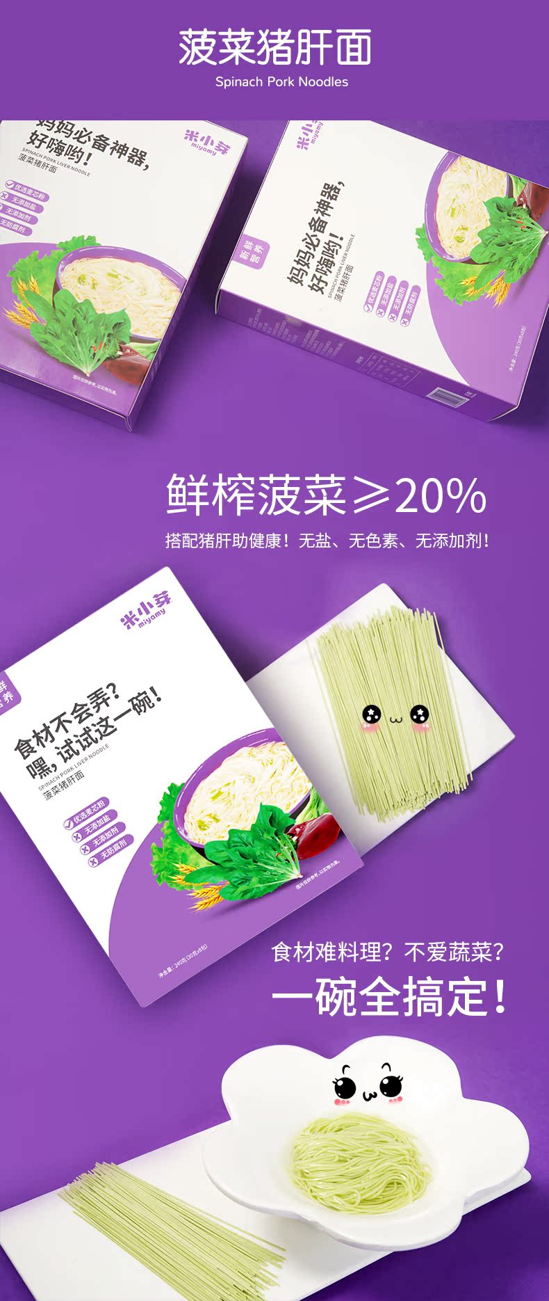 米小芽菠菜猪肝面 无添加盐儿童营养宝宝面条240g*1盒
