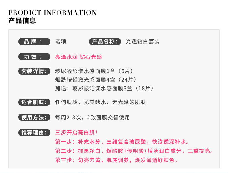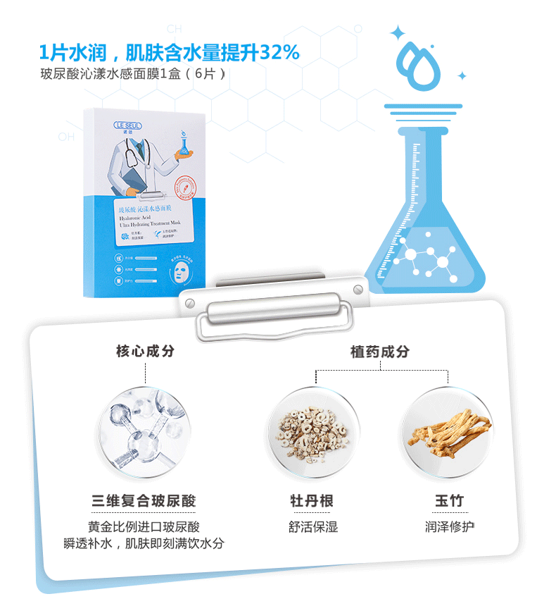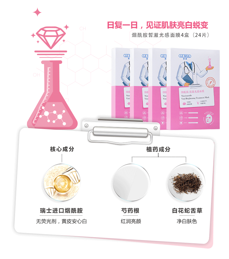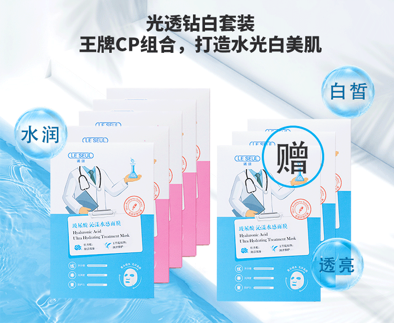Leseul诺颂光透钻白套装玻尿酸补水面膜1盒+烟酰胺亮白面膜4盒