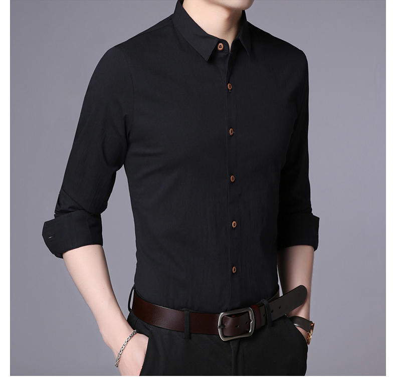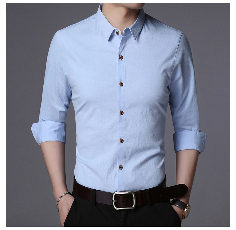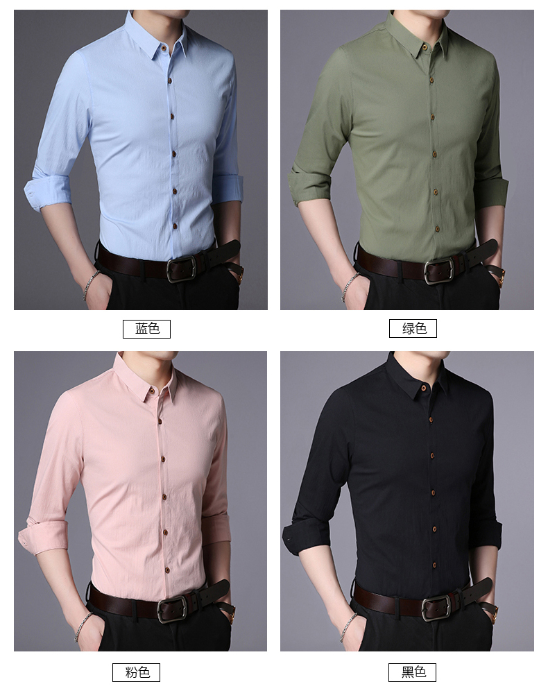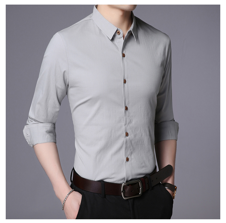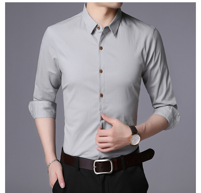 LAKECY/莱克茜男装2019秋季热卖韩版休闲纯色商务长袖衬衫衬衣男