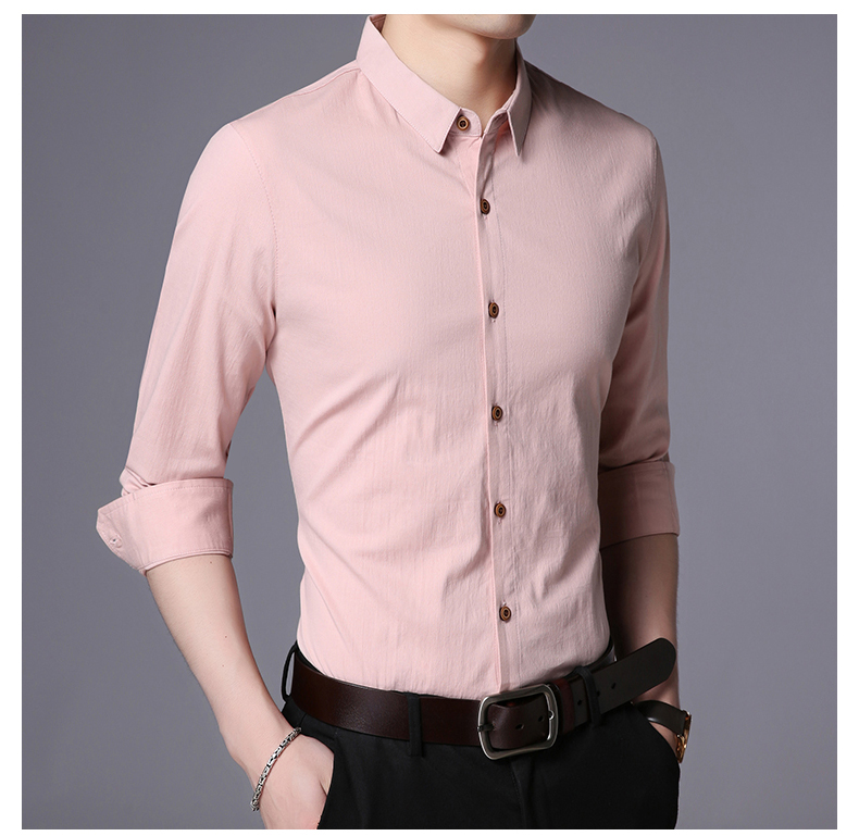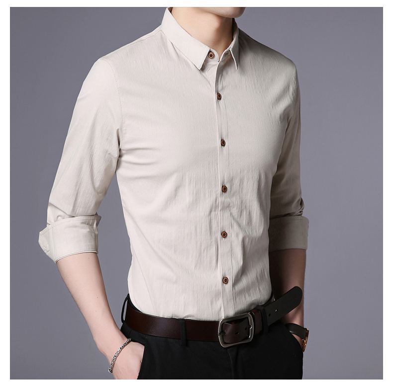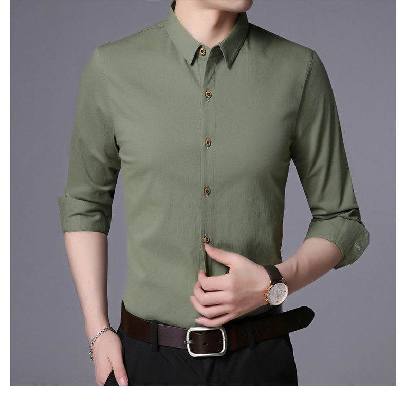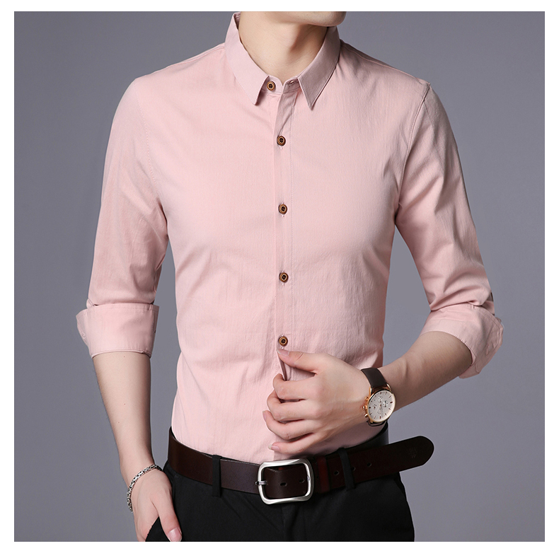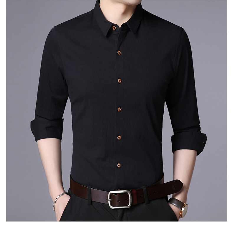 LAKECY/莱克茜男装2019秋季热卖韩版休闲纯色商务长袖衬衫衬衣男